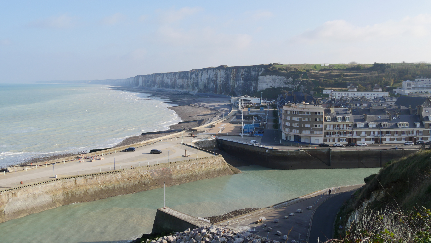 Für die Nacht fahren wir 26 km weiter nach Saint Valery-en-Caux. Ein schöner Stellplatz unterhalb der Steilklippen mit sehr schönem Ausblick.