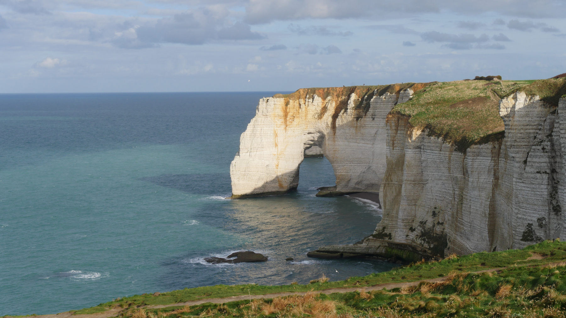Etrètat kennt man wegen den Felsformationen. Bislang waren wir auch erst einmal da und haben die üblichen Fotos gemacht. Heute suchen wir uns über die App komoot eine kleine Wanderung von 5 km und klettern an der Küste und auf den bekannten Felsen selbst. Es lohnt sich.