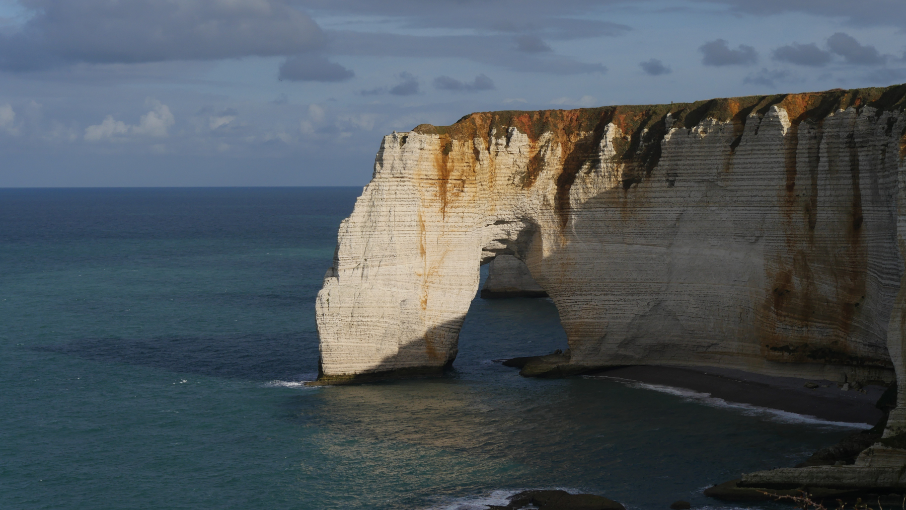 Etrètat kennt man wegen den Felsformationen. Bislang waren wir auch erst einmal da und haben die üblichen Fotos gemacht. Heute suchen wir uns über die App komoot eine kleine Wanderung von 5 km und klettern an der Küste und auf den bekannten Felsen selbst. Es lohnt sich.