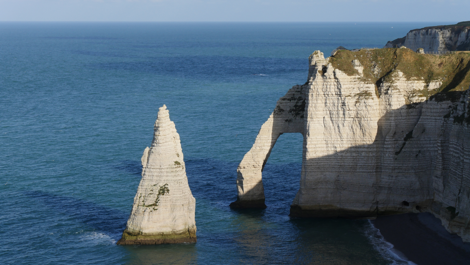 Etrètat kennt man wegen den Felsformationen. Bislang waren wir auch erst einmal da und haben die üblichen Fotos gemacht. Heute suchen wir uns über die App komoot eine kleine Wanderung von 5 km und klettern an der Küste und auf den bekannten Felsen selbst. Es lohnt sich.