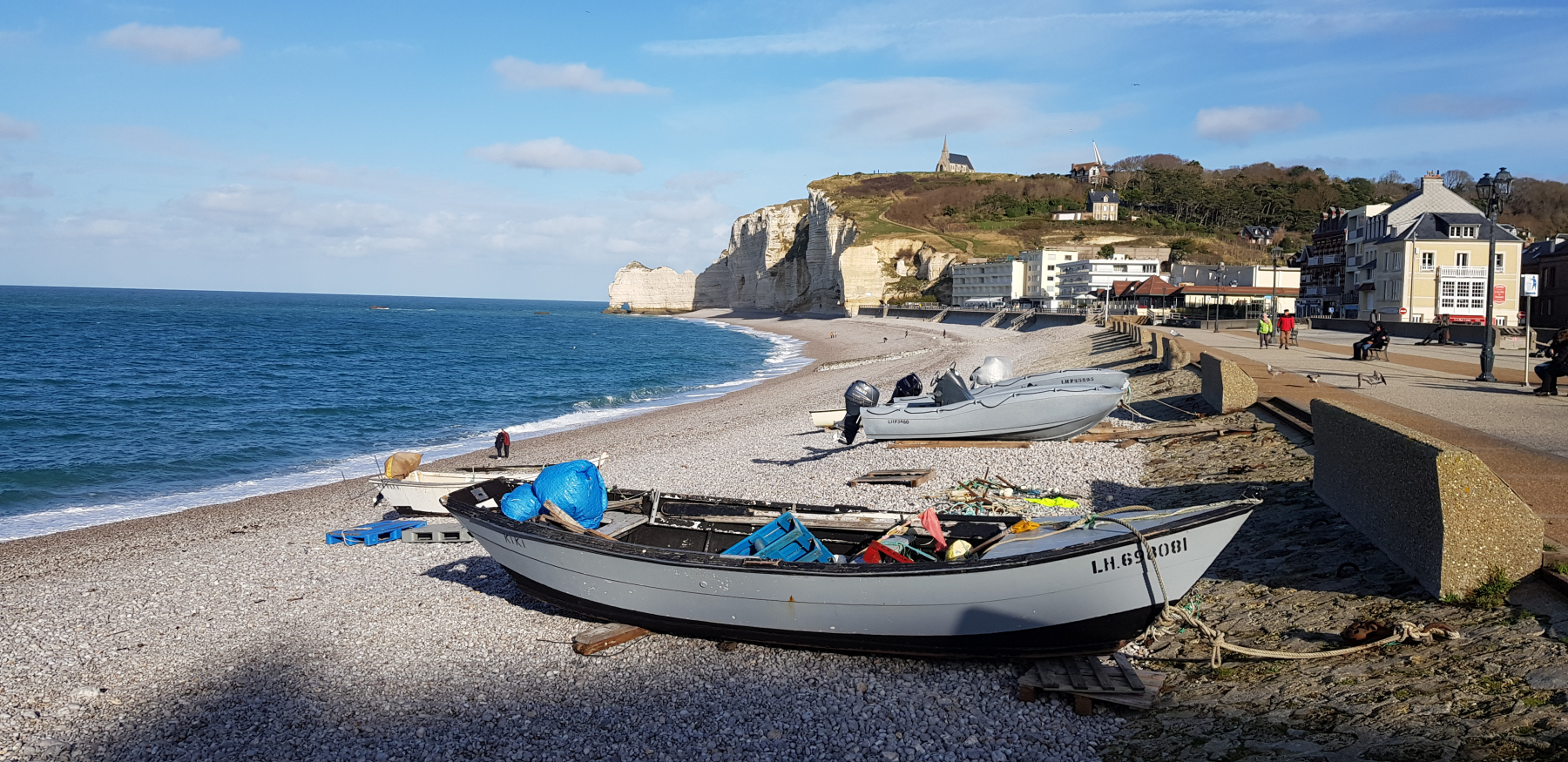 In Fecamp waren wir vor Jahren schon mal. Wir haben einen Stellplatz mitten im Ort auf der Rückseite einer großen Halle im Gedächtnis. Natürlich gibt es den nicht mehr. Dafür folgen wir dem Reisemobilschild und freuen uns über den schönen Blick vom Platz aus. Wenn dieser Platz auch insgesamt eher hässlich ist. Wir stellen fest: Es werden immer weniger Wohnmobile. Wir lernen, dass die Franzosen speziell an Wochenenden, sehr viel unterwegs sind.