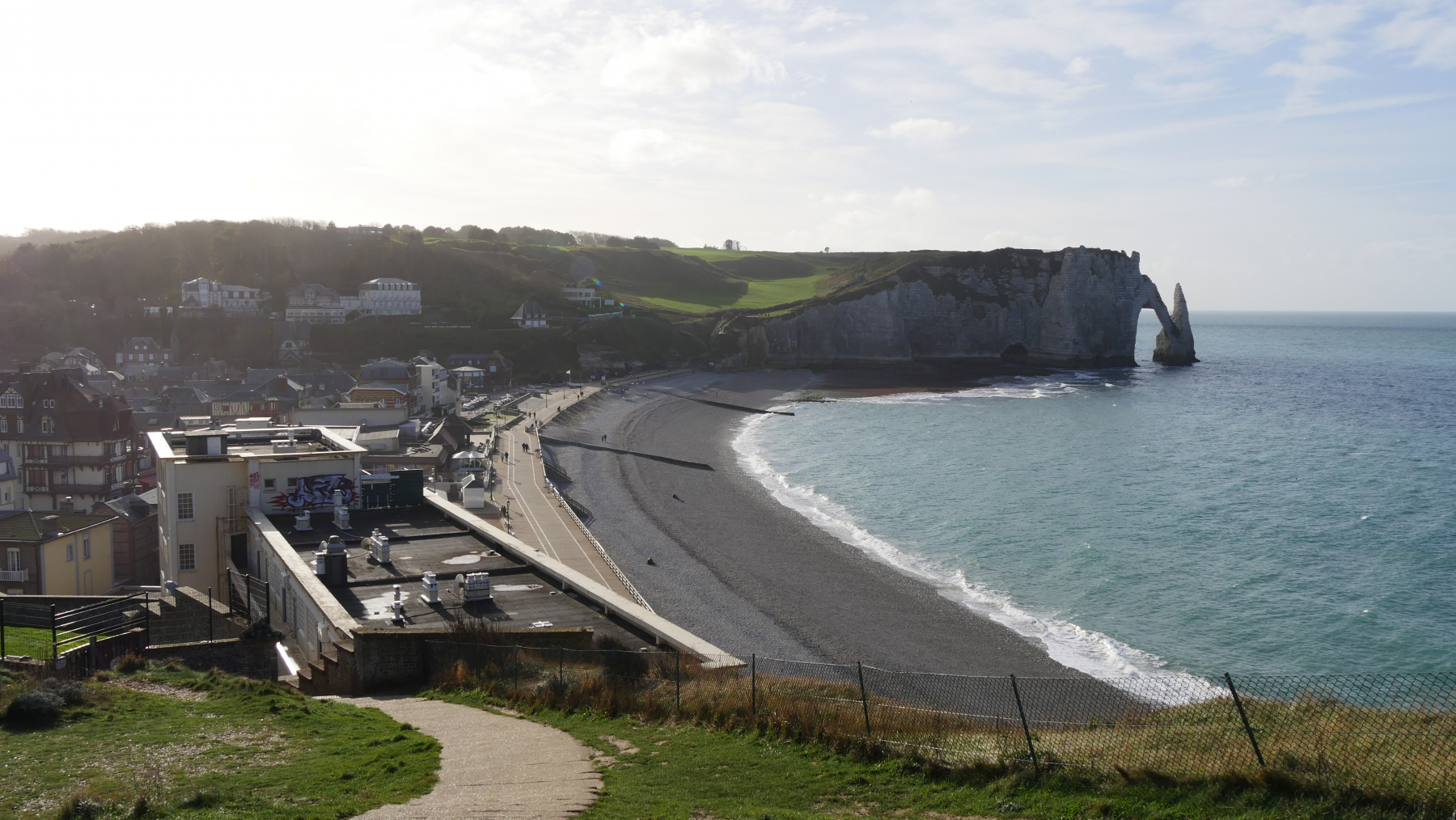 Etrètat kennt man wegen den Felsformationen. Bislang waren wir auch erst einmal da und haben die üblichen Fotos gemacht. Heute suchen wir uns über die App komoot eine kleine Wanderung von 5 km und klettern an der Küste und auf den bekannten Felsen selbst. Es lohnt sich.