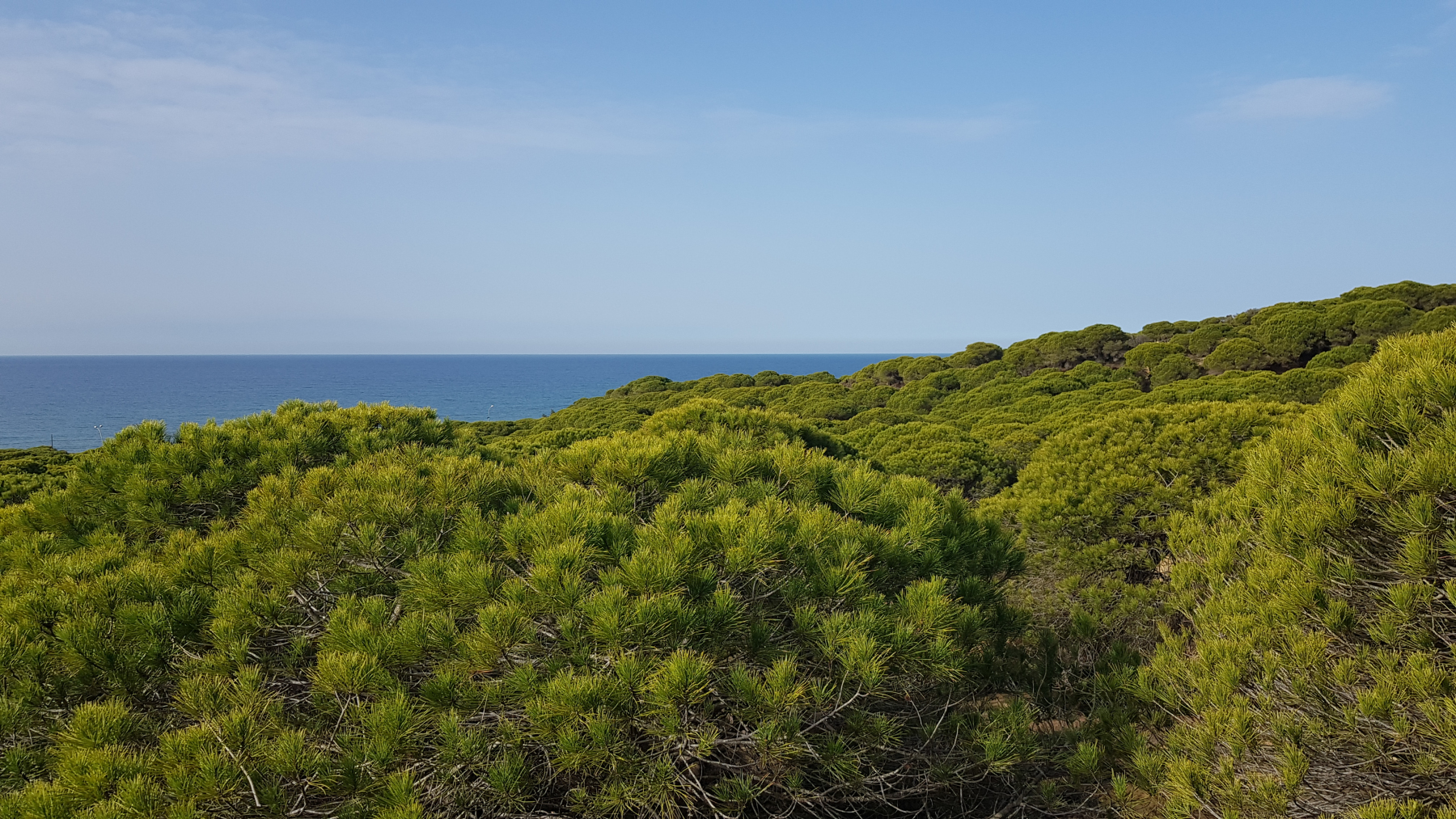 27 km weiter finden wir am nächsten Tag auf einer Klippe in Matalascanas eine sehr schöne Möglichkeit über das Wochenende zu bleiben. 4 Fahrzeug stehen in dem Sackgassenfeldweg. Der Ort ist fußläufig zu erreichen. Wir gehen heute in einem Lokal was Essen und sehen von zu Hause einen schönen Sonnenuntergang. Am Samstag machen wir noch eine kleine Wanderung in das mit Pinien durchsäte Dünengebiet.