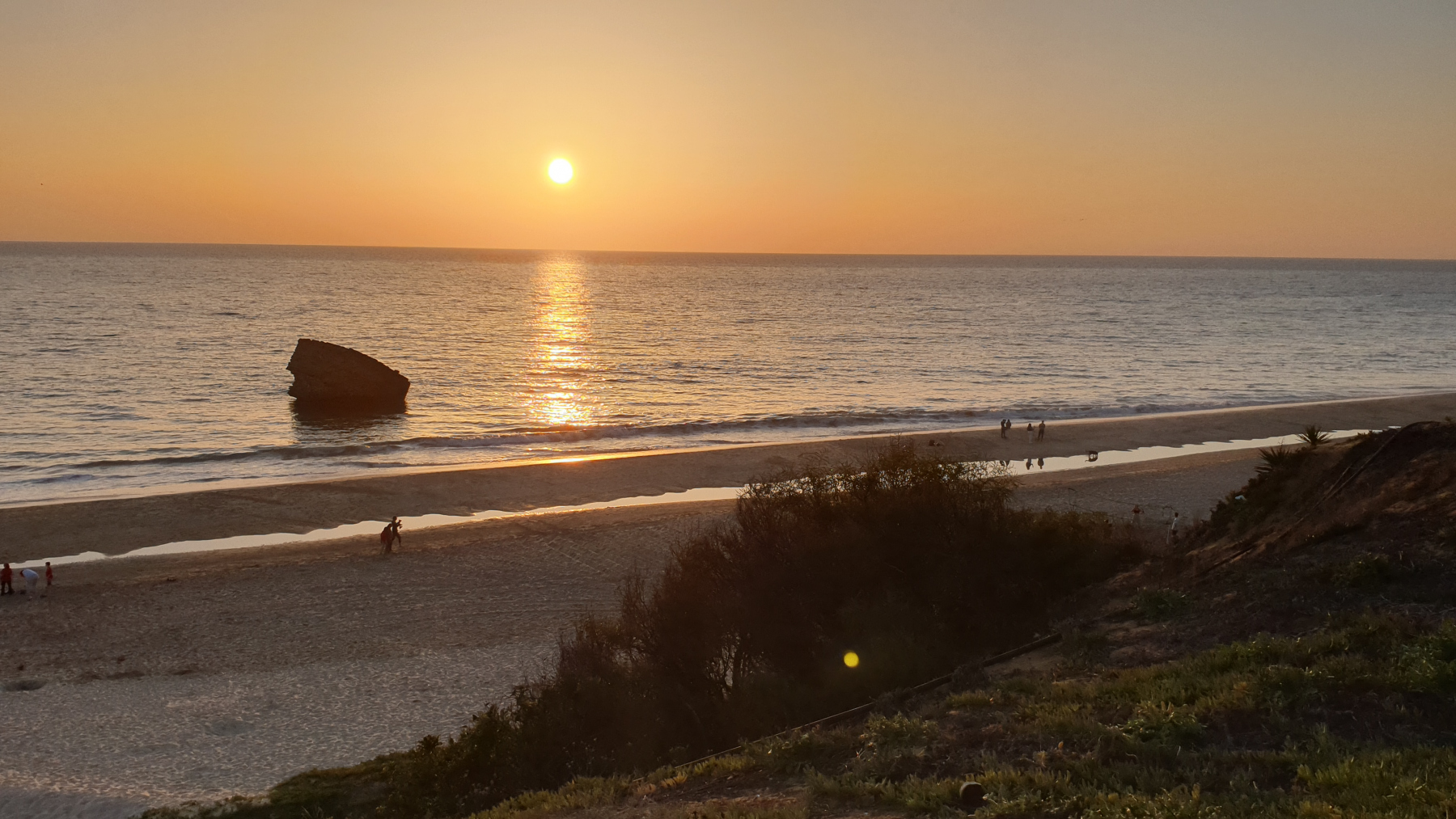 27 km weiter finden wir am nächsten Tag auf einer Klippe in Matalascanas eine sehr schöne Möglichkeit über das Wochenende zu bleiben. 4 Fahrzeug stehen in dem Sackgassenfeldweg. Der Ort ist fußläufig zu erreichen. Wir gehen heute in einem Lokal was Essen und sehen von zu Hause einen schönen Sonnenuntergang. Am Samstag machen wir noch eine kleine Wanderung in das mit Pinien durchsäte Dünengebiet.