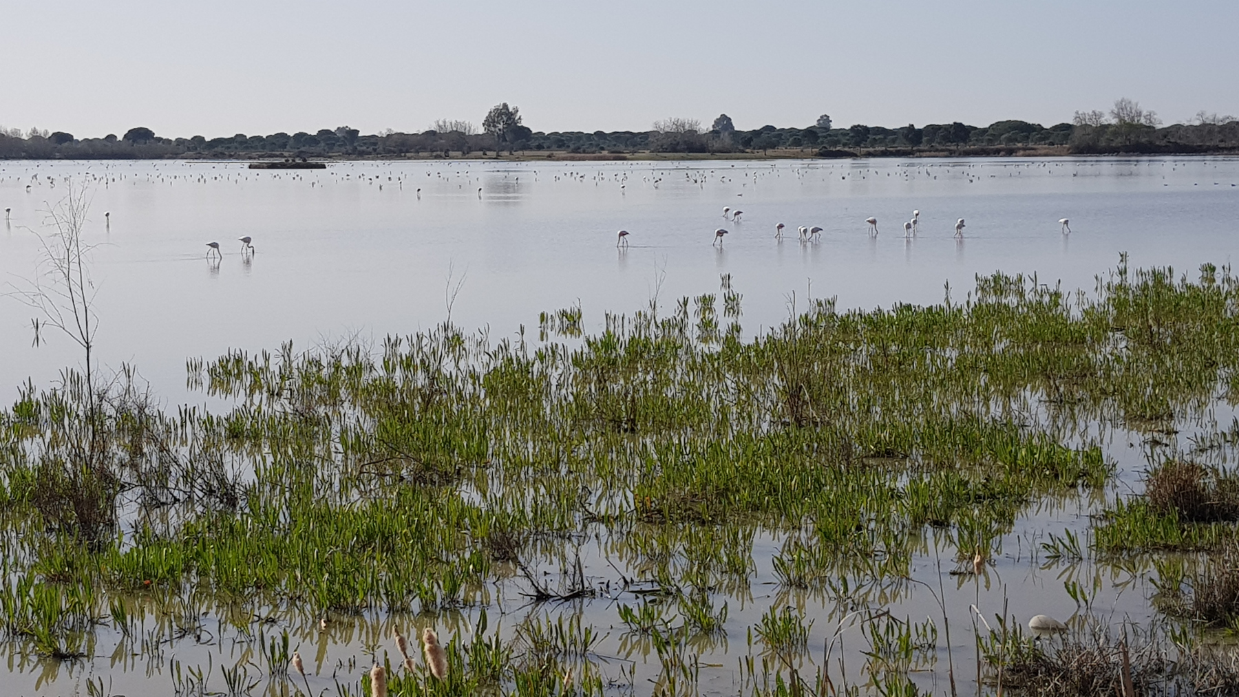 Wir kommen durch Huelva. Erschrocken fahren wir durch große Raffinerien Richtung Naturschutzgebiet Parque Nacional Donana. Es ist mittlerweile schon nach 17.30 Uhr und wir kommen in Mazagon an. Auf dem Platz waren wir im Herbst 2015 und hatten ihn damals mit sehr schön beschrieben. Über 30 Wohnmobile stehen hinter den Verbotsschildern. Wir finden eine freie Stelle und bleiben für die Nacht.