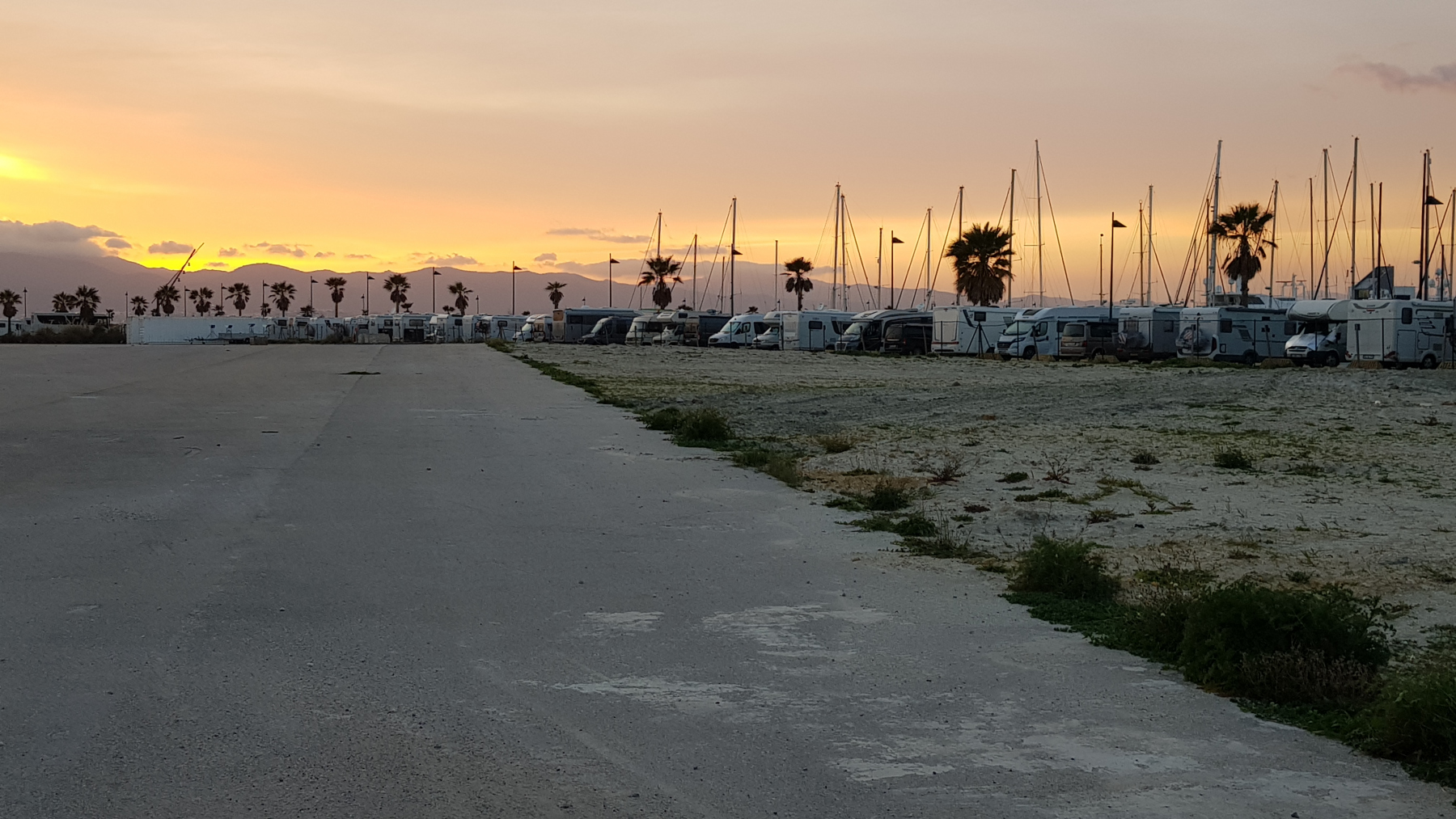 Wir kommen durch Huelva. Erschrocken fahren wir durch große Raffinerien Richtung Naturschutzgebiet Parque Nacional Donana. Es ist mittlerweile schon nach 17.30 Uhr und wir kommen in Mazagon an. Auf dem Platz waren wir im Herbst 2015 und hatten ihn damals mit sehr schön beschrieben. Über 30 Wohnmobile stehen hinter den Verbotsschildern. Wir finden eine freie Stelle und bleiben für die Nacht.