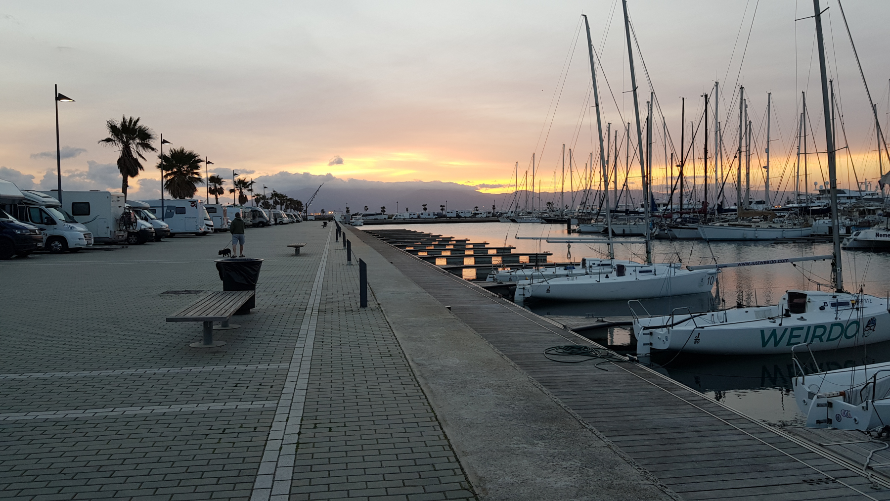Warum wir nach Großbritannien – also nach Gibraltar – fahren? Wir waren tatsächlich 1989 das letzte Mal da und im Grunde nur auf dem Affenfelsen. Mittlerweile soll es dort einen skywalk geben. Und wir hoffen ein Problem zu lösen: Es gibt in ganz Spanien keinen Kaffee – zumindest keinen guten. Die Spanier trinken traditionell eher löslichen. Und dann gibt es ein bis zwei spanische Filterkaffee – sorry, die sind schrecklich. Die Fahrt durch den Naturpark stellt sich als Herausforderung dar. Enge Straßen, sehr kurvenreich und sehr schlechte Straße. Wir fahren nach 40 km auf dem kürzesten Weg Richtung Schnellstraße – war den Umweg nicht wert. Wir kommen nach La Linea zum Stellplatz mit Blick auf Gibraltar und sind erschrocken: Alles voller Wohnmobile – die meisten aus Deutschland – und das trotz Kosten von € 12,50/Tag. Es gibt nur wenige freie Plätze von den angegebenen 60. Wir finden aber einen sehr schönen mit Blick auf den Felsen, den Yachthafen und die Bucht von Algeciras.
