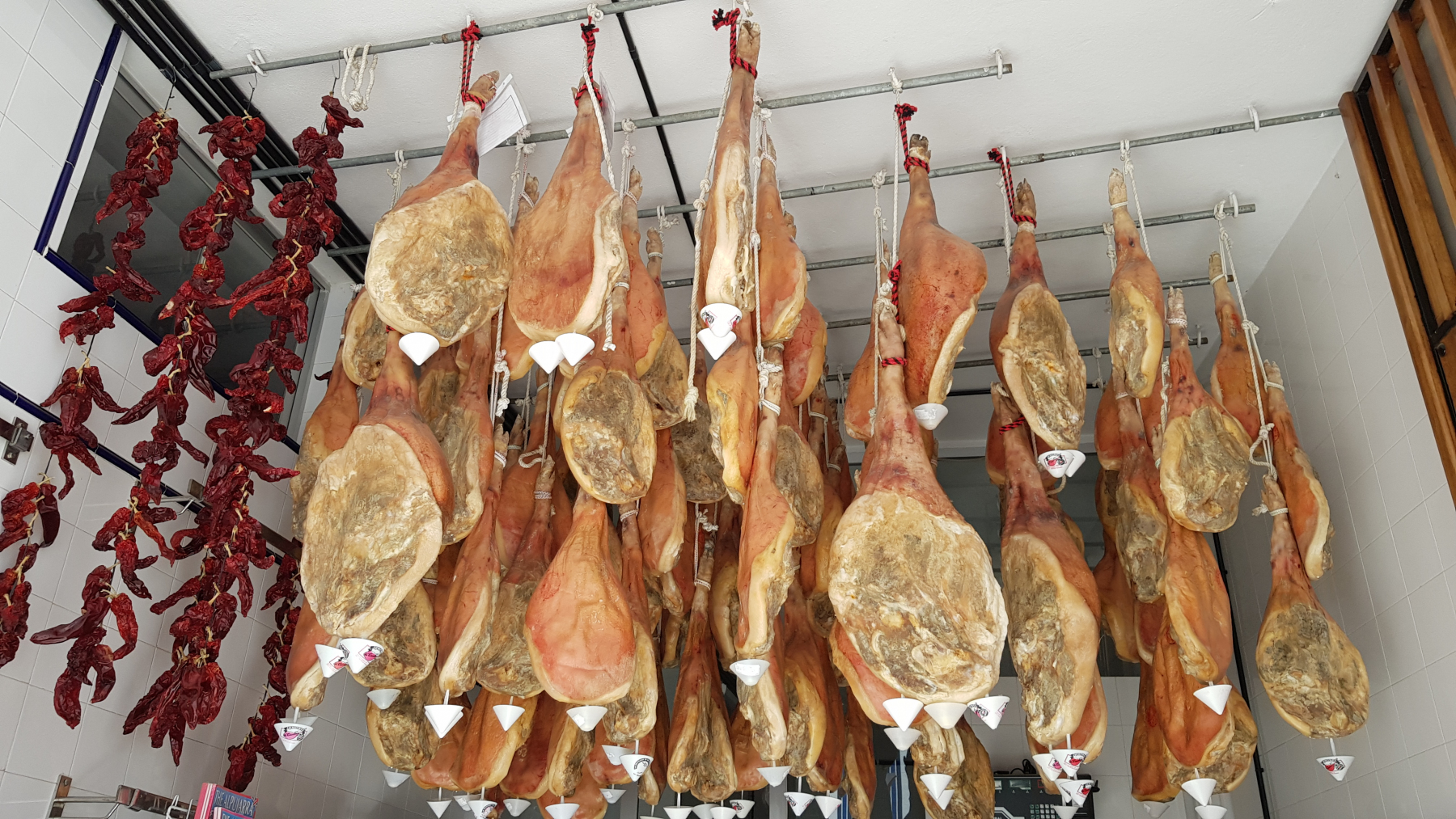 In Trevelez kommt noch Schinken dazu, bei vier verschiedenen Bodegas. Der Eine oder Andere fragt sich sicher: Serrano, gibt es da Unterschiede. Wir haben es auch erst beim letzten Besuch in Spanien gelernt. Geschmacklich gibt es tatsächlich zwischen den Produzenten Unterschiede, aber entscheidend finden wir die Länge der Reife. Der Schinken z.B. mit 33 Monaten Reifung, den wir gekauft haben, ist sehr zart und intensiv im Geschmack. In Deutschland haben wir so etwas noch nicht gesehen. Es ist schon wieder 17 Uhr, so bleiben wir.