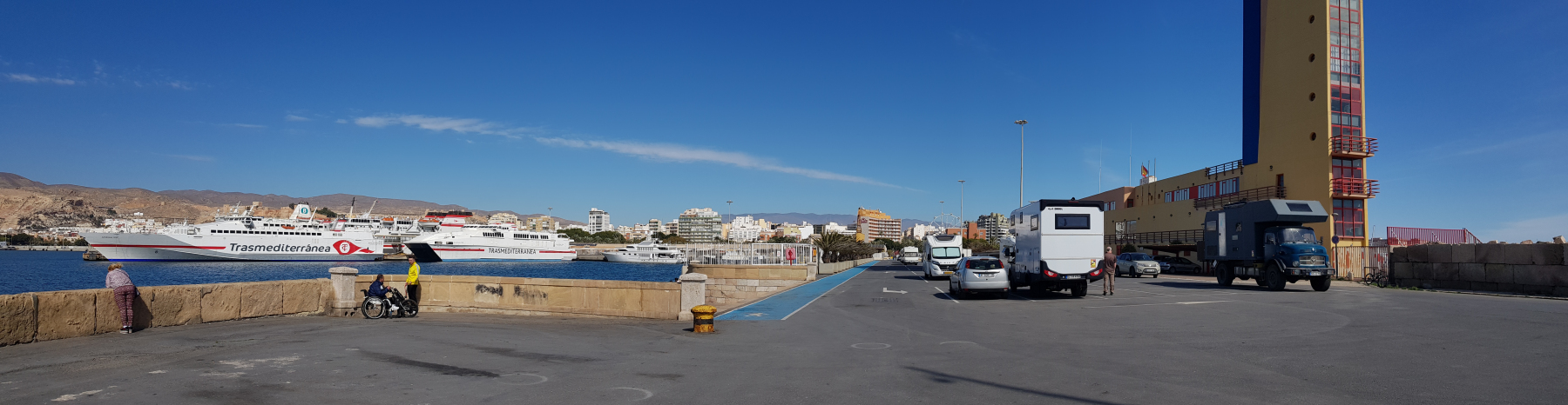 Sonntag fahren wir sensationelle 8 km weiter. Ein kostenloser Platz mit Blick auf Gibraltar. Er ist nicht wirklich gepflegt, was wir live am sehr vollen Sonntag erleben. Warum lassen Spanier die angefangene Fritten auf der Mauer liegen und andere nutzen diese zum pinkeln?!