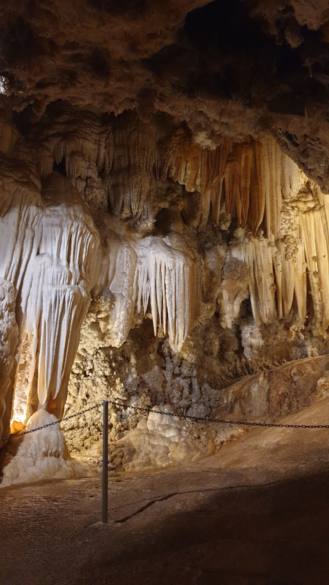 Aracena ist bekannt für seine Grotte. Im Internet steht was von Onlinebuchung, sonst kein Zugang. Was wir nicht mehr mögen, sind feste Termine. Was ist, wenn etwas dazwischenkommt oder wir einfach keine Lust haben. Also stehen wir um 11 Uhr, eine halbe Stunde vor Führungsbeginn am Eingang. Karten kein Problem, € 10,– p.P. Zwanzig Leute stehen schon da. Wir bekommen je ein Audiogerät für einen deutschen Guide. Super. Funktioniert einwandfrei.