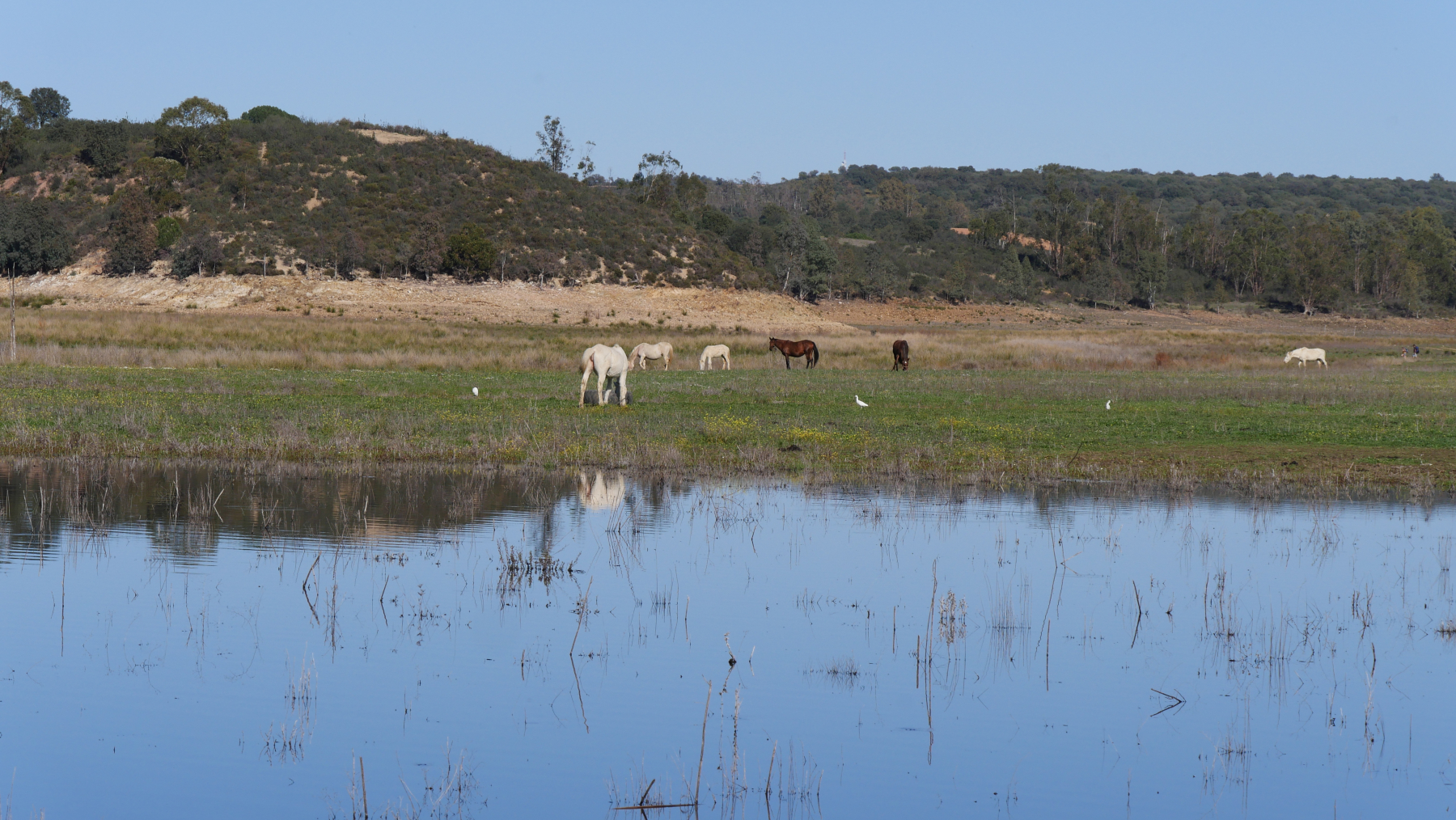 Unser Mittagessen nehmen wir an einem Stausee ein – an sich einsam – nur etwas laut. Wir gucken noch mal in die App Park4night um Alternativen zu Ayamonte zu suchen. Es sollen zwar 27 Plätze zur Verfügung stehen, aber wer weiß, nach der Erfahrung eben. Anette liest mir einen brandaktuellen Kommentar zu Ayamonte vor: „Wir müssen Ihnen leider mitteilen, dass der Platz wegen Umbauarbeiten ab dem 1. Februar geschlossen bleibt“.