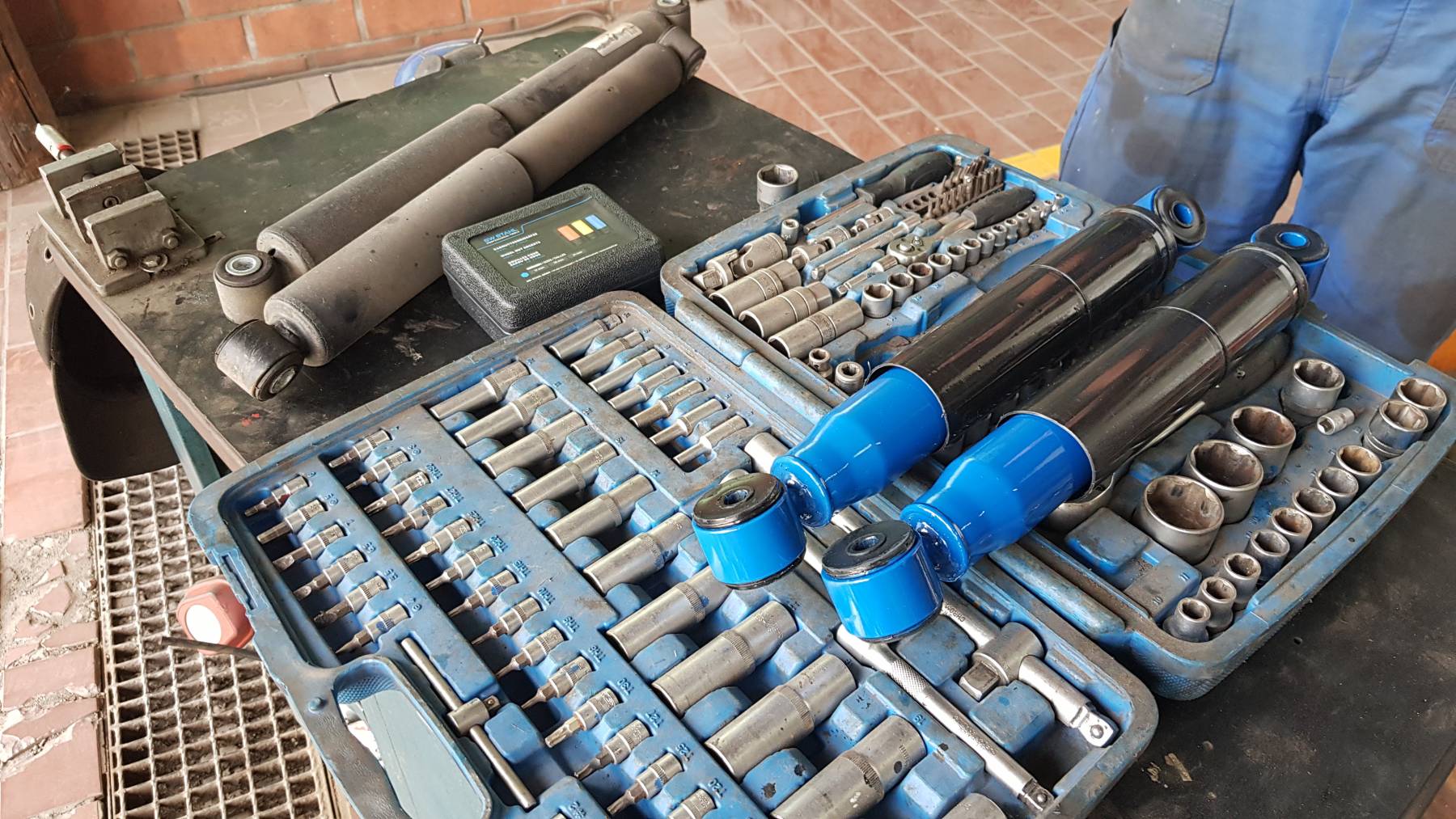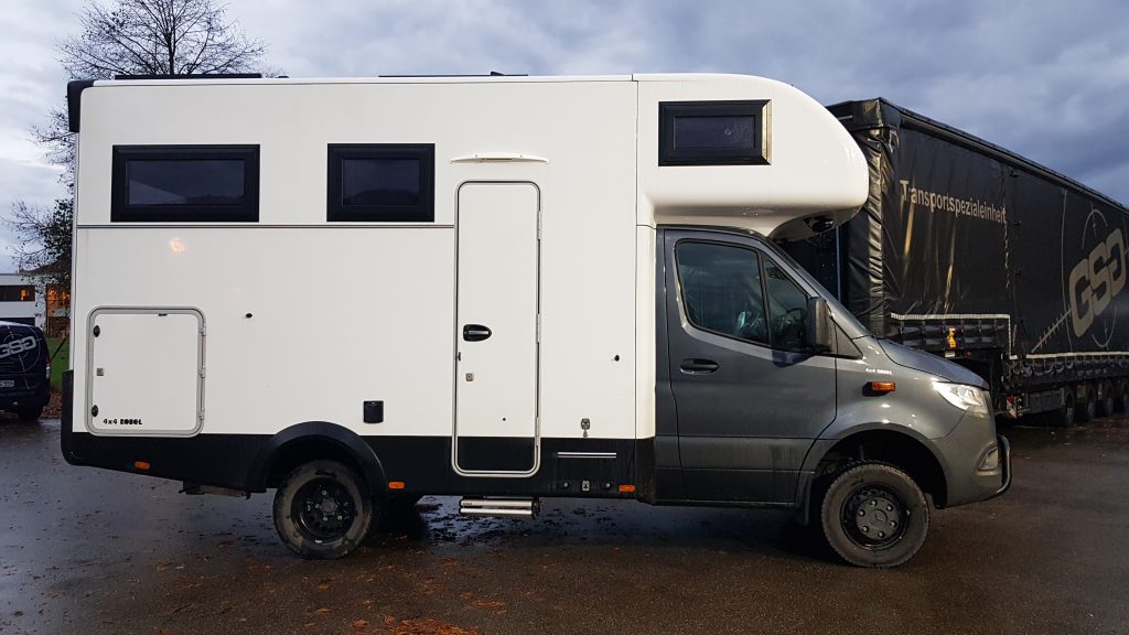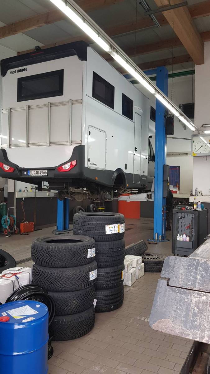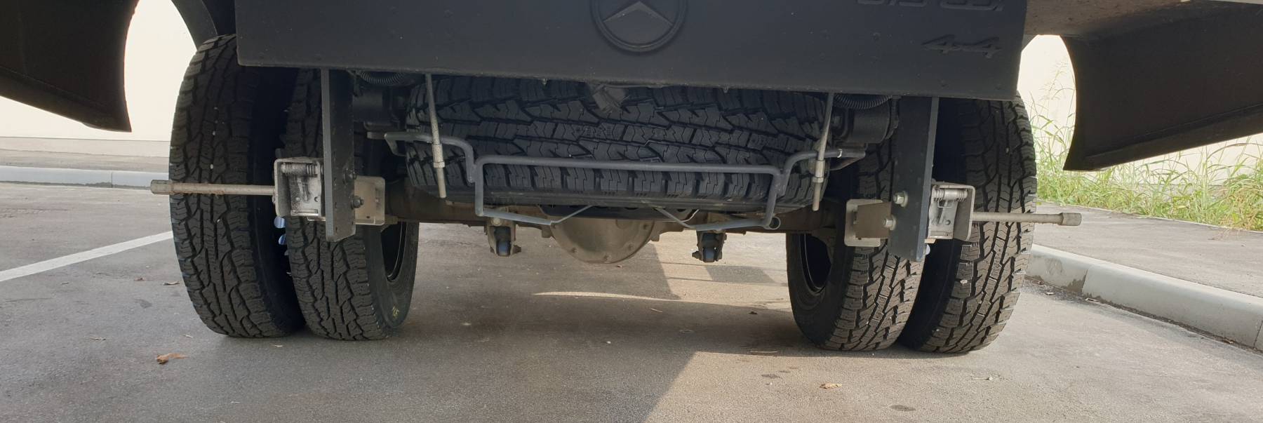 Die originalen Stoßdämpfer sind nicht für den Aufbau geeignet. Das Fahrzeug schaukelt speziell bei Kurven stark und ist sehr windempfindlich. Wir haben neue Stoßdämpfer von der Fa. Marquart einbauen lassen. Das hat sich als beste Zusatzinvestition herausgestellt.