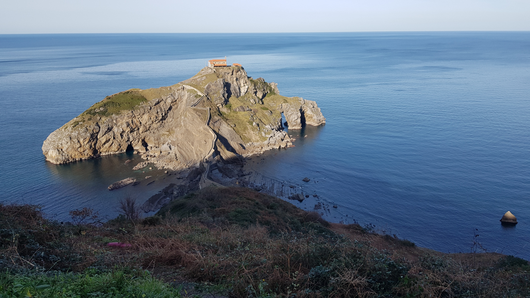 Manchmal muss man auch Rückschritte machen. Wir hatten die Serie Game of Thrones gesehen und ganz in der Nähe gibt es ein kleines Eiland, welches wir uns angucken und erwandern möchten. Es liegt halt wieder östlich. Auf dem Weg liegt noch eine Schwebefähre. Wir sehen sie, wo sie gerade mit Menschen gefüllt den Estuary Bilbao überquert. Wir finden aber beim besten Willen keinen Parkplatz im Umkreis von 2 km. Schicksal.