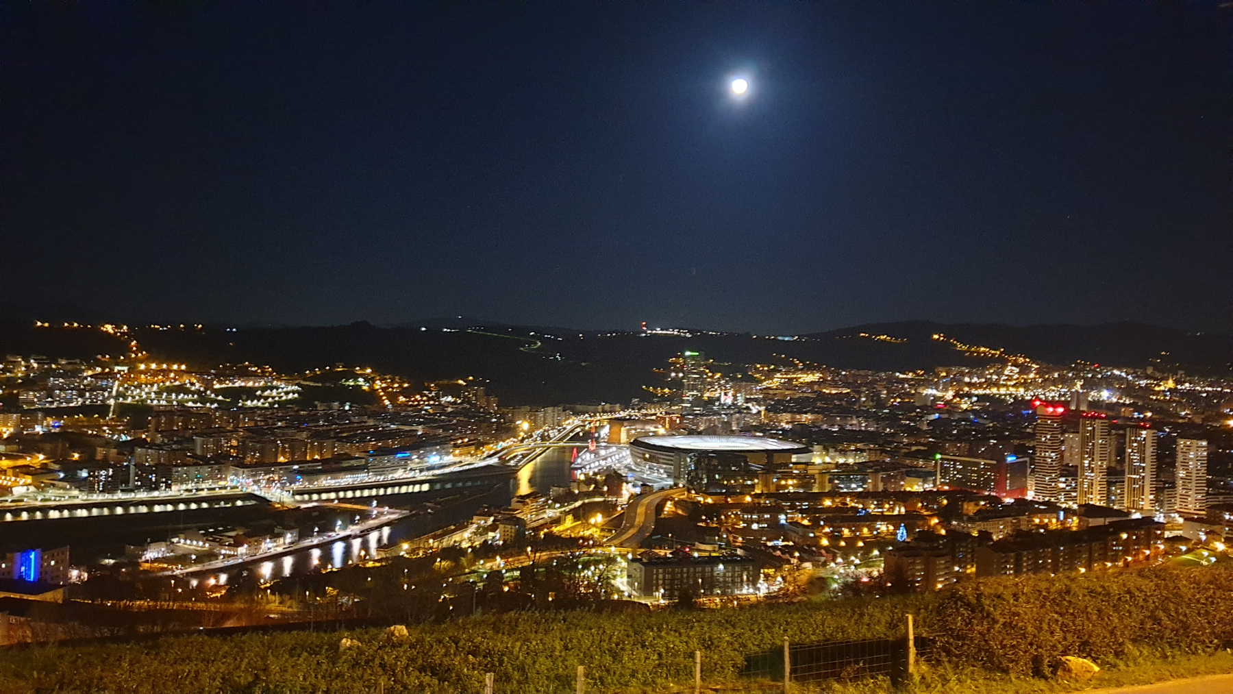 Schon um 15.48 Uhr kommen wir an dem Stellplatz in Bilbao an. Wir parken vor der Schranke und gehen zum Häuschen. Die beiden Damen sind sehr freundlich, nennen uns die Nummer unseres Platzes, natürlich nach Bezahlung von € 15 für eine Nacht. Wir lernen, wir müssen jeden Tag bis 12 Uhr wieder kommen und für den kommenden Tag bezahlen. Naja, sei es drum. Das wir drei Nächte bleiben wissen wir jetzt noch nicht. Wir bekommen einen Stadtplan und den Hinweis auf die nächste Bushaltestelle, sind halt 5 km bis in die City. Wir steigen ins Auto und sind hibbelig. Wir gucken auf Bilbao, nur wo ist unser Platz. Einfach Super – direkt in der ersten Reihe mit Topblick auf die Stadt.