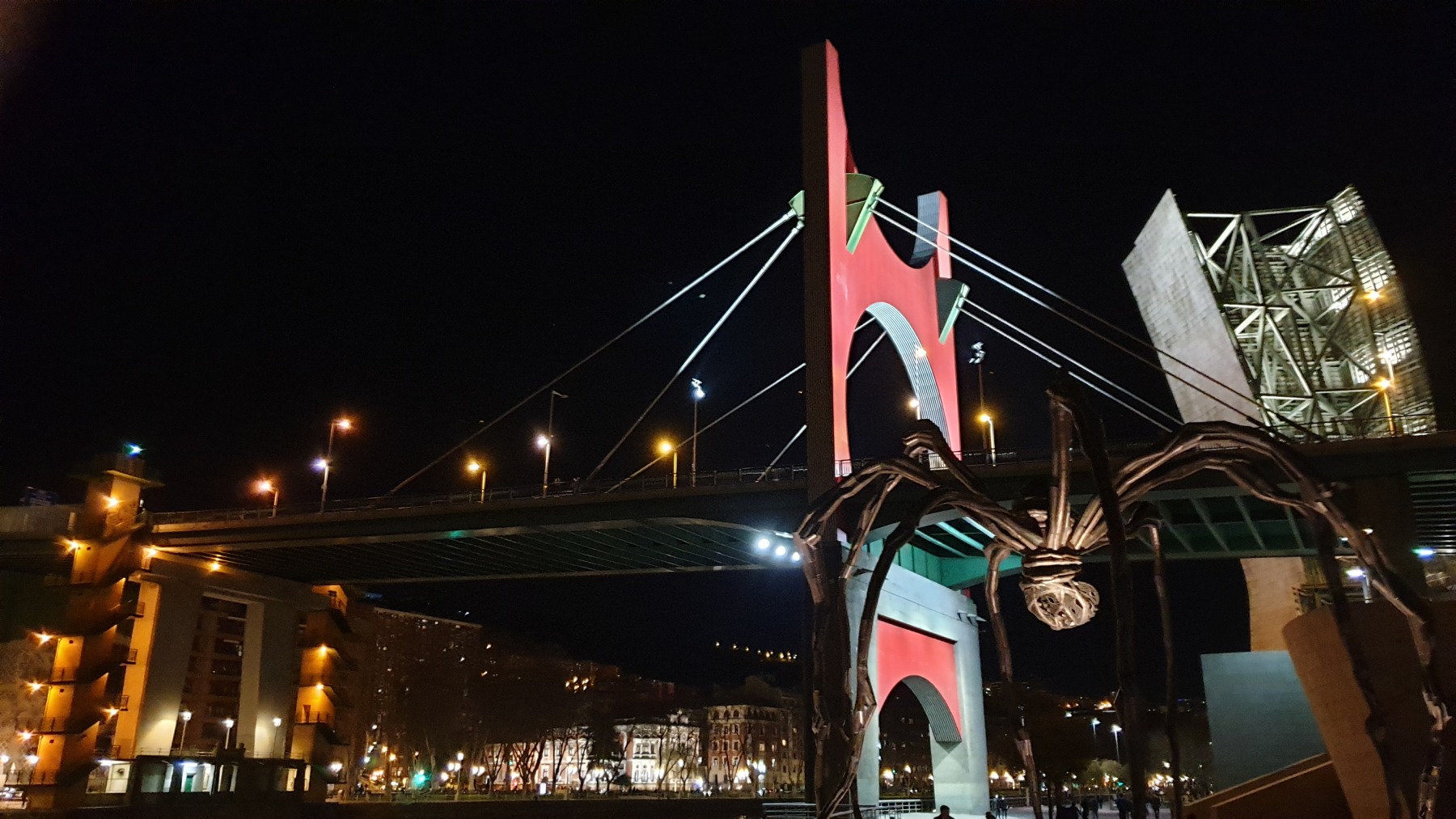 Schon um 15.48 Uhr kommen wir an dem Stellplatz in Bilbao an. Wir parken vor der Schranke und gehen zum Häuschen. Die beiden Damen sind sehr freundlich, nennen uns die Nummer unseres Platzes, natürlich nach Bezahlung von € 15 für eine Nacht. Wir lernen, wir müssen jeden Tag bis 12 Uhr wieder kommen und für den kommenden Tag bezahlen. Naja, sei es drum. Das wir drei Nächte bleiben wissen wir jetzt noch nicht. Wir bekommen einen Stadtplan und den Hinweis auf die nächste Bushaltestelle, sind halt 5 km bis in die City. Wir steigen ins Auto und sind hibbelig. Wir gucken auf Bilbao, nur wo ist unser Platz. Einfach Super – direkt in der ersten Reihe mit Topblick auf die Stadt.