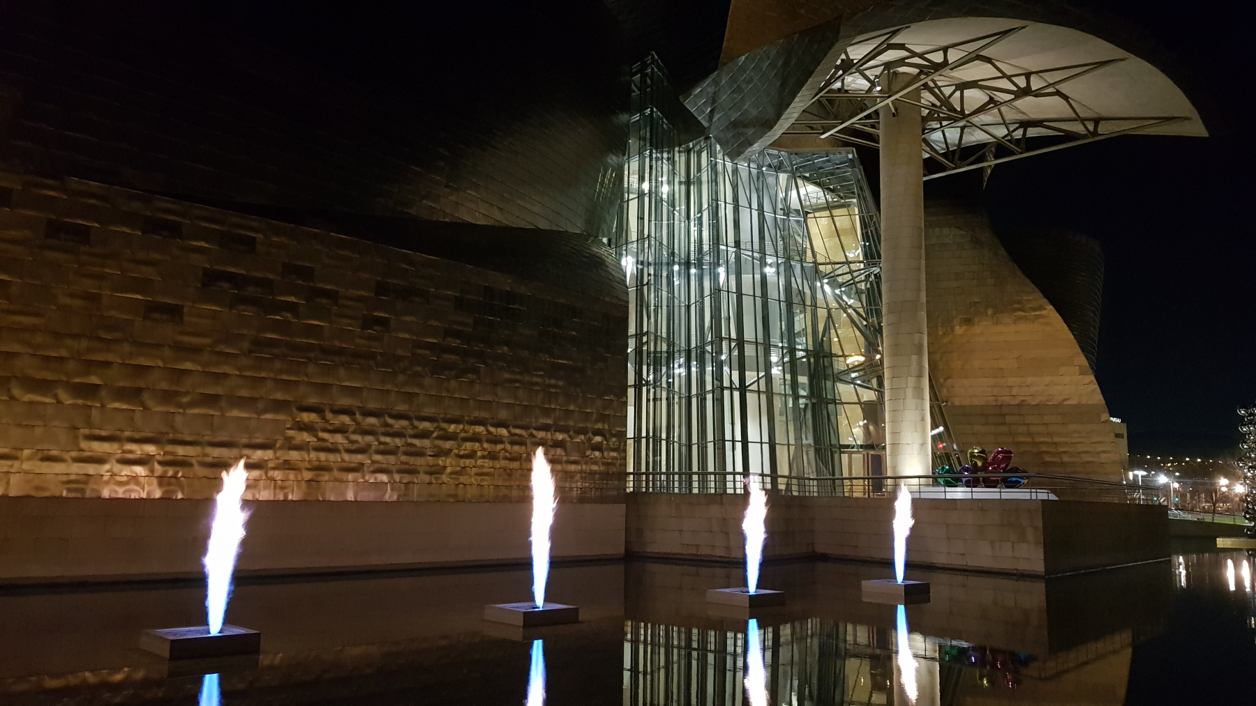 Schon um 15.48 Uhr kommen wir an dem Stellplatz in Bilbao an. Wir parken vor der Schranke und gehen zum Häuschen. Die beiden Damen sind sehr freundlich, nennen uns die Nummer unseres Platzes, natürlich nach Bezahlung von € 15 für eine Nacht. Wir lernen, wir müssen jeden Tag bis 12 Uhr wieder kommen und für den kommenden Tag bezahlen. Naja, sei es drum. Das wir drei Nächte bleiben wissen wir jetzt noch nicht. Wir bekommen einen Stadtplan und den Hinweis auf die nächste Bushaltestelle, sind halt 5 km bis in die City. Wir steigen ins Auto und sind hibbelig. Wir gucken auf Bilbao, nur wo ist unser Platz. Einfach Super – direkt in der ersten Reihe mit Topblick auf die Stadt.