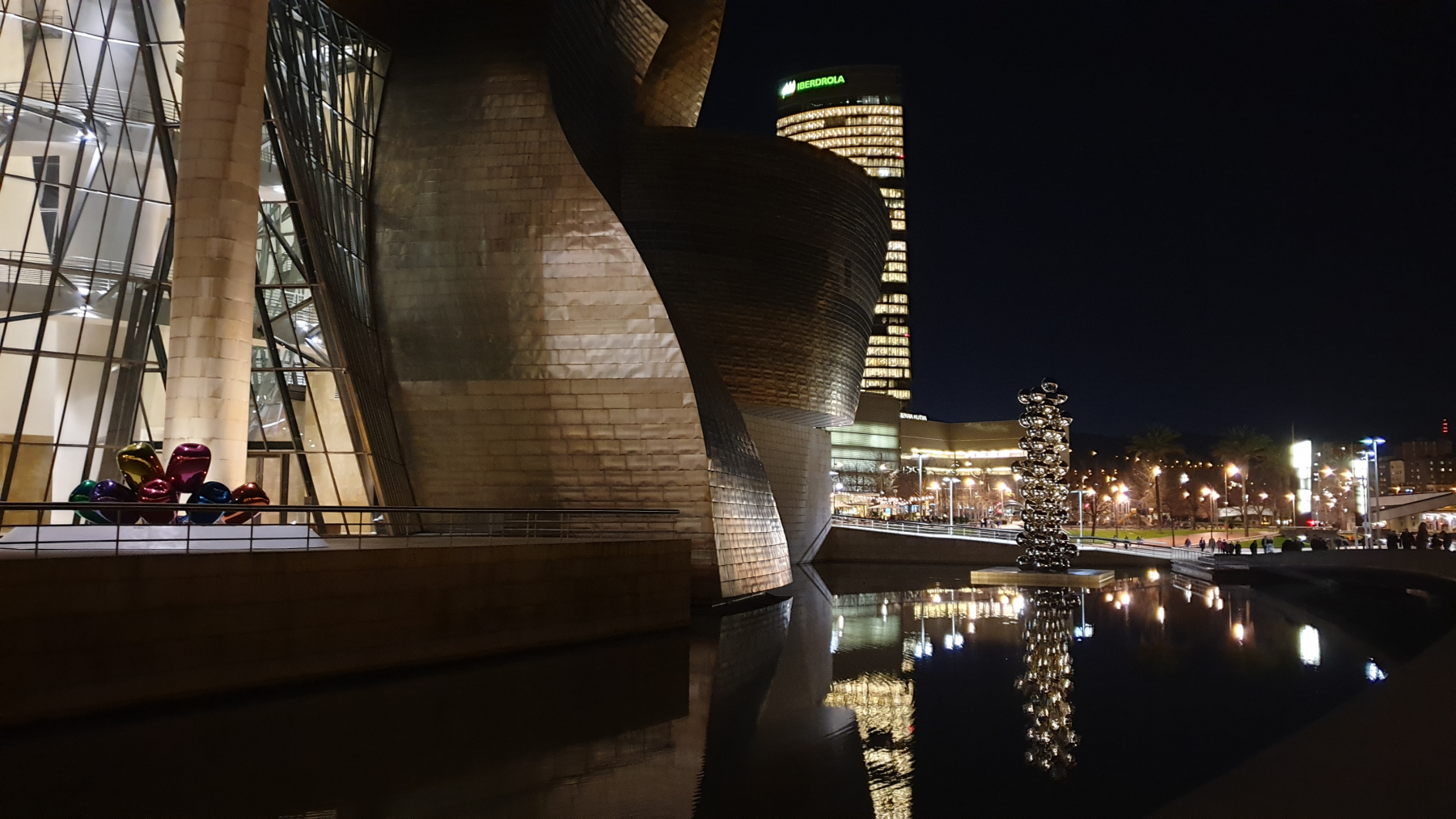 Schon um 15.48 Uhr kommen wir an dem Stellplatz in Bilbao an. Wir parken vor der Schranke und gehen zum Häuschen. Die beiden Damen sind sehr freundlich, nennen uns die Nummer unseres Platzes, natürlich nach Bezahlung von € 15 für eine Nacht. Wir lernen, wir müssen jeden Tag bis 12 Uhr wieder kommen und für den kommenden Tag bezahlen. Naja, sei es drum. Das wir drei Nächte bleiben wissen wir jetzt noch nicht. Wir bekommen einen Stadtplan und den Hinweis auf die nächste Bushaltestelle, sind halt 5 km bis in die City. Wir steigen ins Auto und sind hibbelig. Wir gucken auf Bilbao, nur wo ist unser Platz. Einfach Super – direkt in der ersten Reihe mit Topblick auf die Stadt.