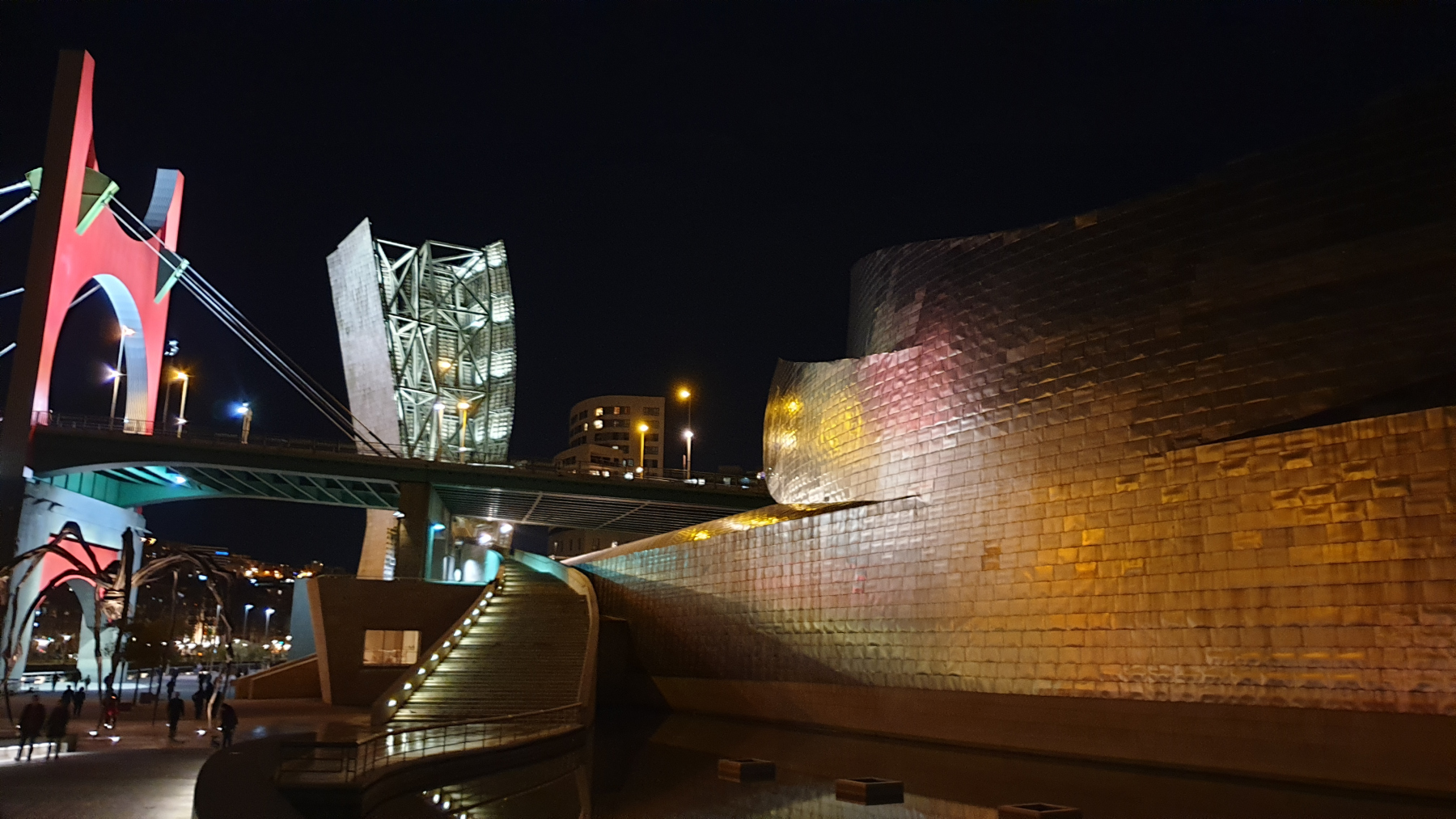 Schon um 15.48 Uhr kommen wir an dem Stellplatz in Bilbao an. Wir parken vor der Schranke und gehen zum Häuschen. Die beiden Damen sind sehr freundlich, nennen uns die Nummer unseres Platzes, natürlich nach Bezahlung von € 15 für eine Nacht. Wir lernen, wir müssen jeden Tag bis 12 Uhr wieder kommen und für den kommenden Tag bezahlen. Naja, sei es drum. Das wir drei Nächte bleiben wissen wir jetzt noch nicht. Wir bekommen einen Stadtplan und den Hinweis auf die nächste Bushaltestelle, sind halt 5 km bis in die City. Wir steigen ins Auto und sind hibbelig. Wir gucken auf Bilbao, nur wo ist unser Platz. Einfach Super – direkt in der ersten Reihe mit Topblick auf die Stadt.