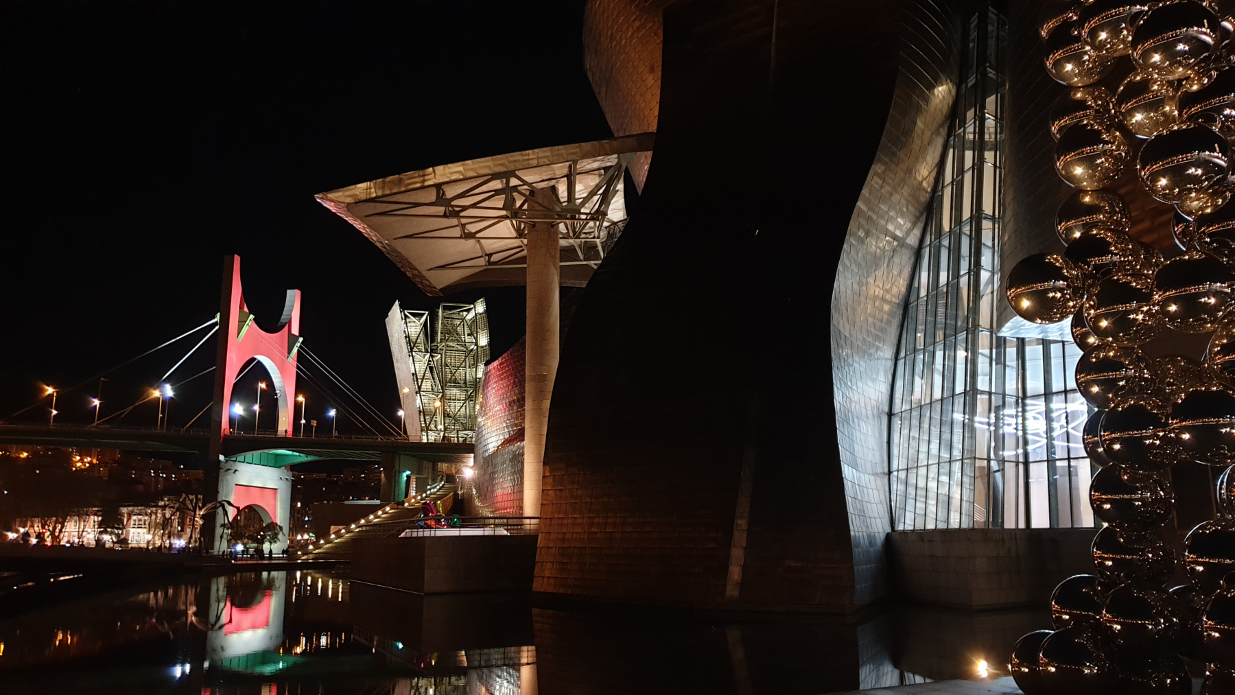 Schon um 15.48 Uhr kommen wir an dem Stellplatz in Bilbao an. Wir parken vor der Schranke und gehen zum Häuschen. Die beiden Damen sind sehr freundlich, nennen uns die Nummer unseres Platzes, natürlich nach Bezahlung von € 15 für eine Nacht. Wir lernen, wir müssen jeden Tag bis 12 Uhr wieder kommen und für den kommenden Tag bezahlen. Naja, sei es drum. Das wir drei Nächte bleiben wissen wir jetzt noch nicht. Wir bekommen einen Stadtplan und den Hinweis auf die nächste Bushaltestelle, sind halt 5 km bis in die City. Wir steigen ins Auto und sind hibbelig. Wir gucken auf Bilbao, nur wo ist unser Platz. Einfach Super – direkt in der ersten Reihe mit Topblick auf die Stadt.