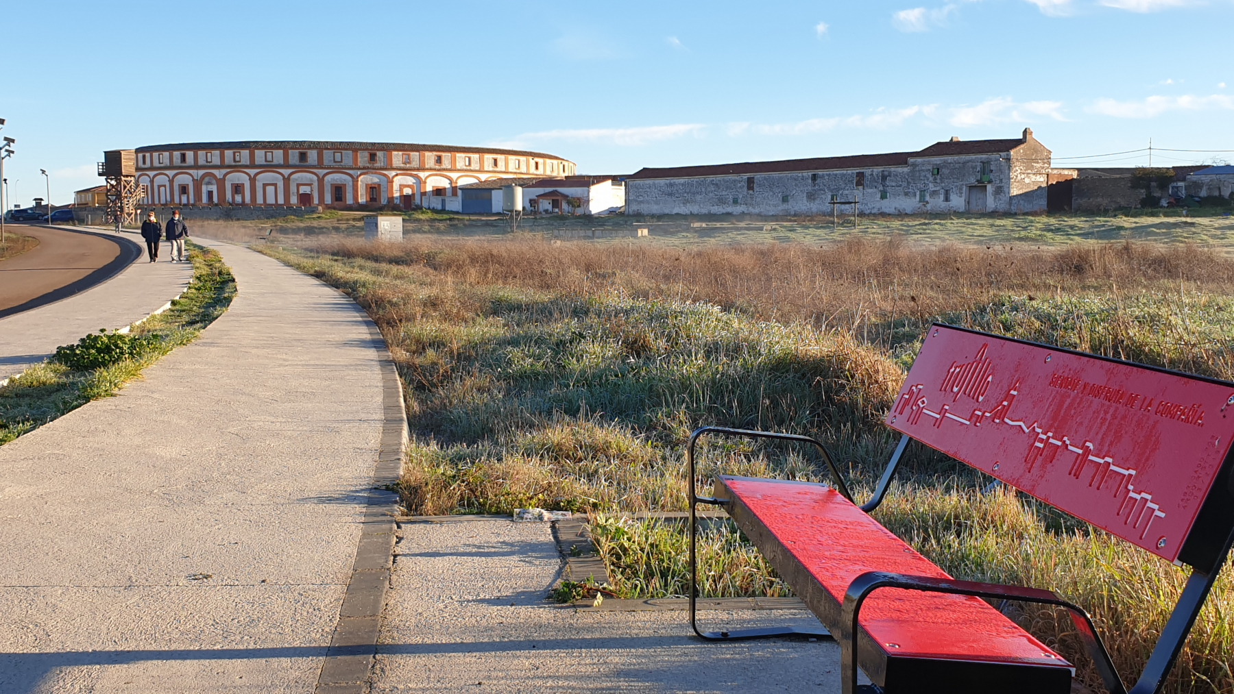 Unser aller letztes Ziel wird jetzt doch Fregenal de la Sierra, nur 22 km südlich. Bekannt ist der kleine Ort durch die Templerburg aus dem 13. Jahrhundert in die dann später eine Stierkampfarena gebaut worden ist. Und die kann man kostenlos besichtigen.