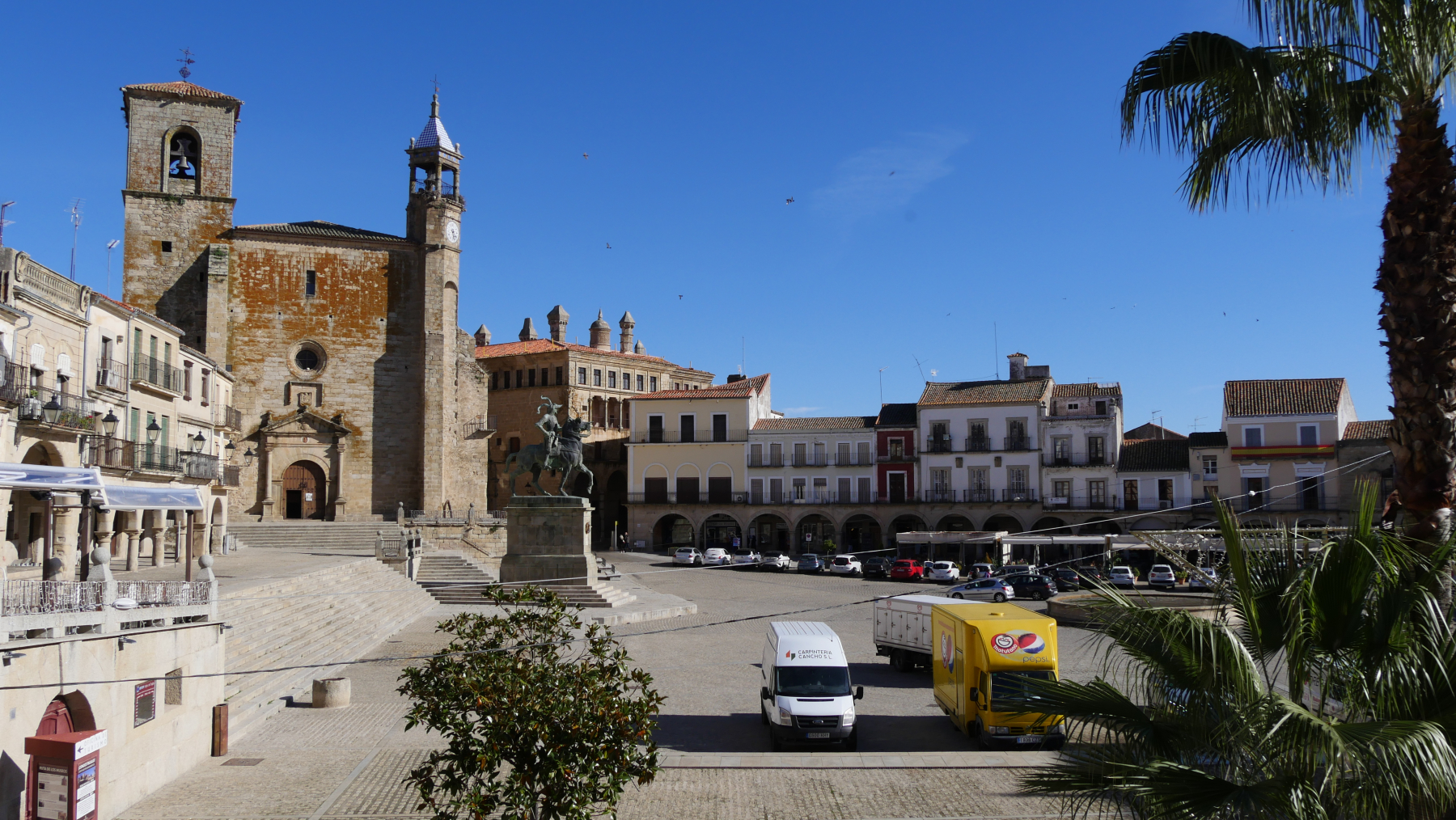 Wir steuern Trujillo an, dort einen Platz an der Stierkampfarena. Der Ort hat ein sehr schönes Ortsbild und ist bekannt als Startort vieler Eroberer (Konquisitadoren). Aber wie vieles im westlichen und südwestlichen Spanien ist der arabische Einfluss, speziell an den Bauten, deutlich zu erkennen. Um den Hauptplatz gruppieren sich die bedeutendsten Gebäude.