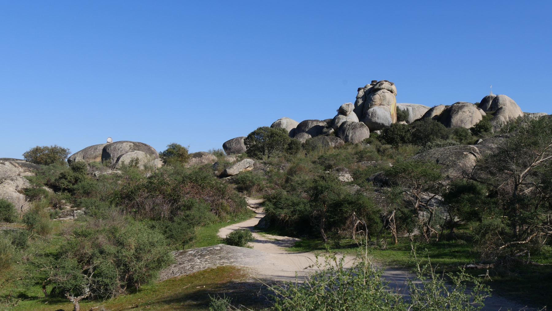 In der Nähe der portugiesischen Grenze machen wir dann eine Wanderung zu insgesamt fünf Dolmen. Vorbei kommen wir auch an eindrucksvollen Granitfelsen, Berrocal de la Data. Und wir können noch einige Geier beobachten.