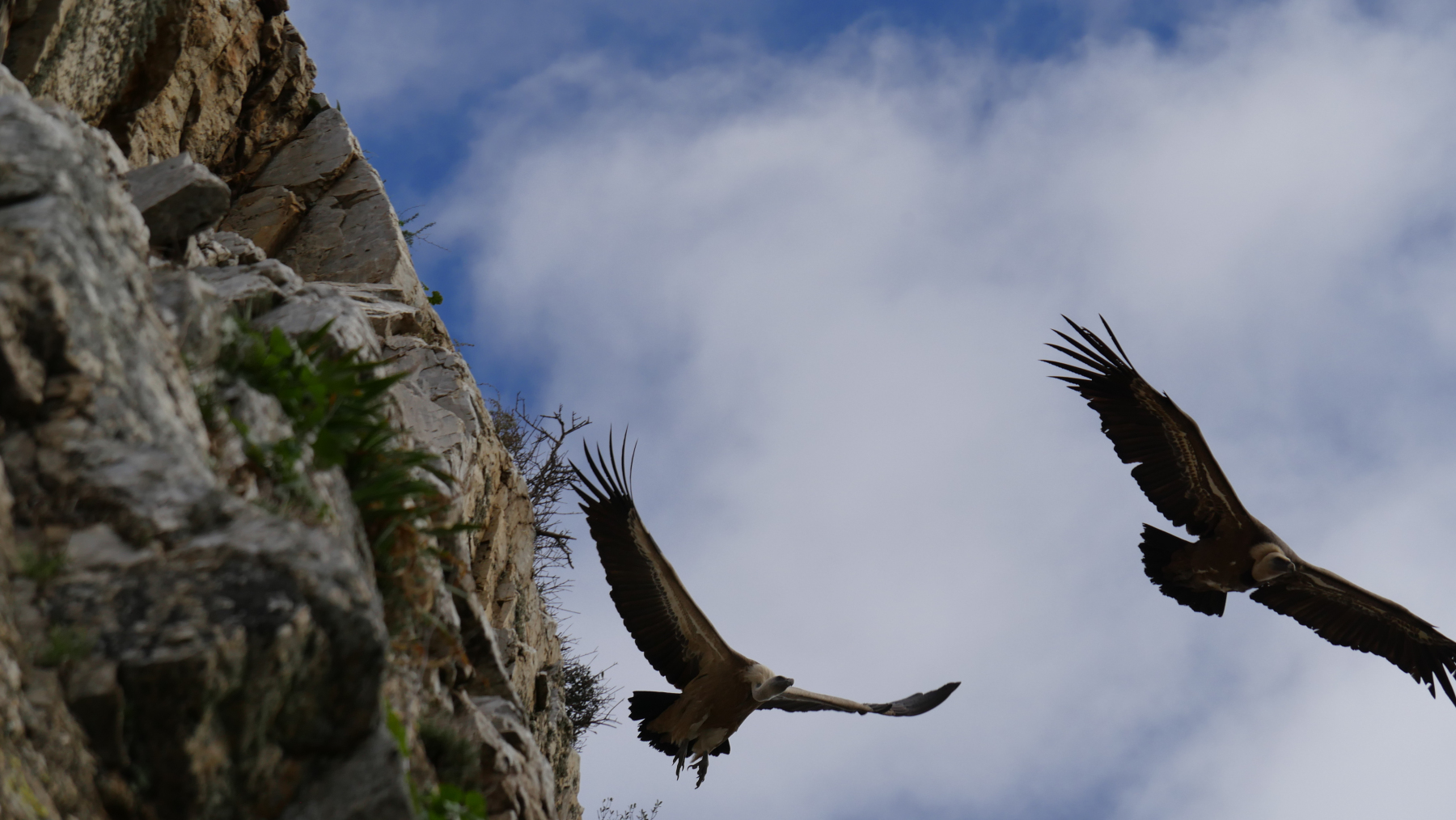 Wir fahren zu dem uns bekannten Geierfelsen. Ein Parkstreifen für wenige Fahrzeuge ist an der Straßenseite. Ein PKW fährt raus. Glück gehabt – ich fahre rückwärts rein – denkste, ich stehe zur Hälfte auf der Straße. Der folgende Parkplatz ein paar hundert Meter weiter ist abgesperrt. Also weiter zum Wanderpunkt zum Castle. Stand an sich nicht auf dem Plan. Der steile Anstieg wird aber belohnt. Toller Ausblick und die Geier schweben nicht nur über uns, sondern auch unter uns und gleiten an uns vorbei.