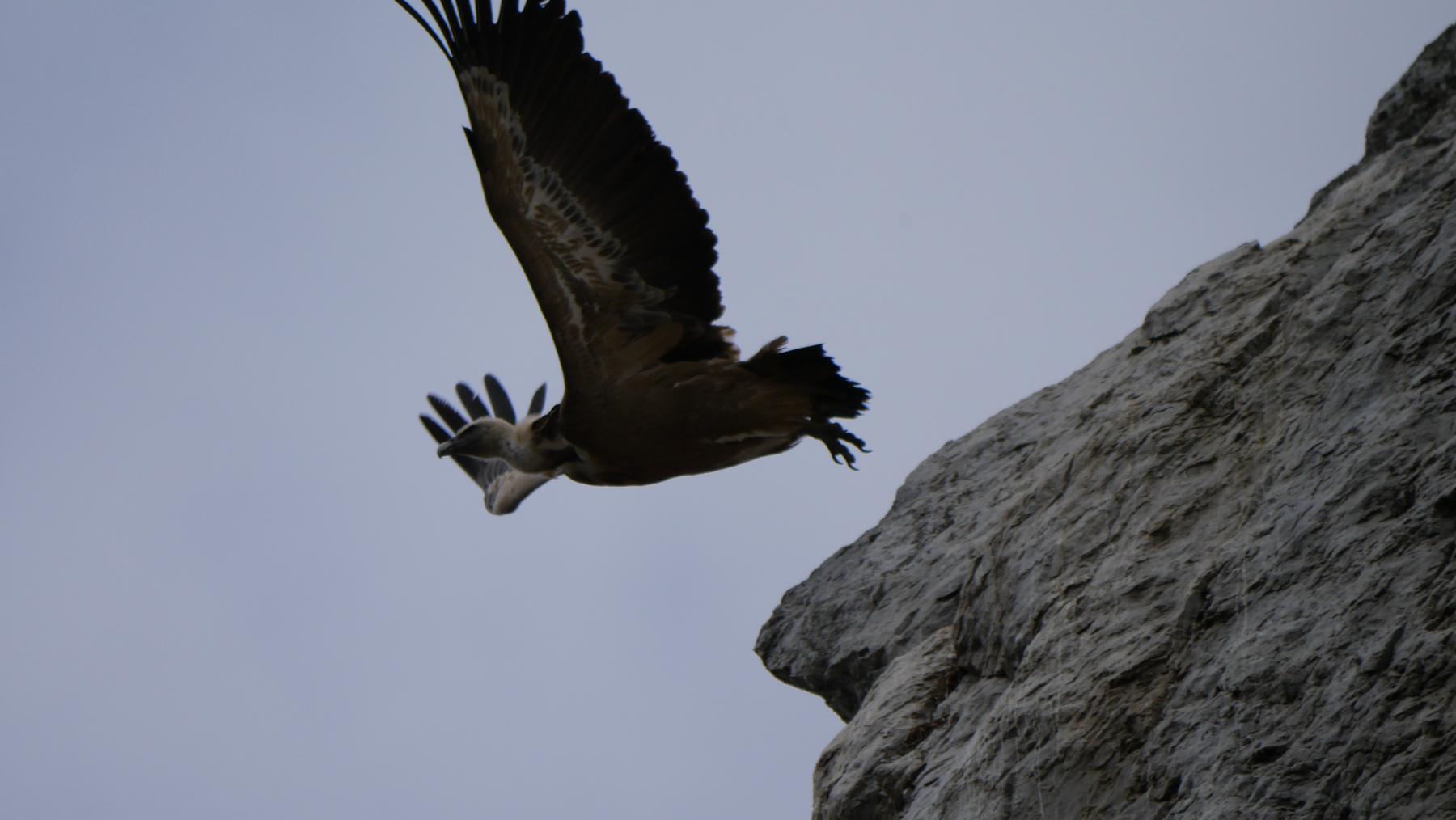Wir fahren zu dem uns bekannten Geierfelsen. Ein Parkstreifen für wenige Fahrzeuge ist an der Straßenseite. Ein PKW fährt raus. Glück gehabt – ich fahre rückwärts rein – denkste, ich stehe zur Hälfte auf der Straße. Der folgende Parkplatz ein paar hundert Meter weiter ist abgesperrt. Also weiter zum Wanderpunkt zum Castle. Stand an sich nicht auf dem Plan. Der steile Anstieg wird aber belohnt. Toller Ausblick und die Geier schweben nicht nur über uns, sondern auch unter uns und gleiten an uns vorbei.