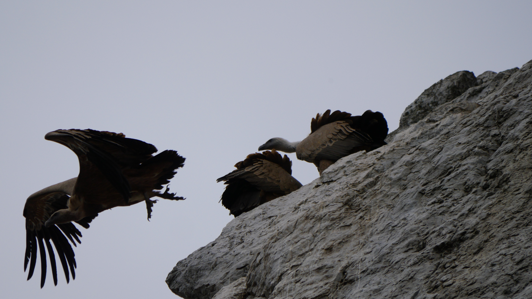 Wir fahren zu dem uns bekannten Geierfelsen. Ein Parkstreifen für wenige Fahrzeuge ist an der Straßenseite. Ein PKW fährt raus. Glück gehabt – ich fahre rückwärts rein – denkste, ich stehe zur Hälfte auf der Straße. Der folgende Parkplatz ein paar hundert Meter weiter ist abgesperrt. Also weiter zum Wanderpunkt zum Castle. Stand an sich nicht auf dem Plan. Der steile Anstieg wird aber belohnt. Toller Ausblick und die Geier schweben nicht nur über uns, sondern auch unter uns und gleiten an uns vorbei.