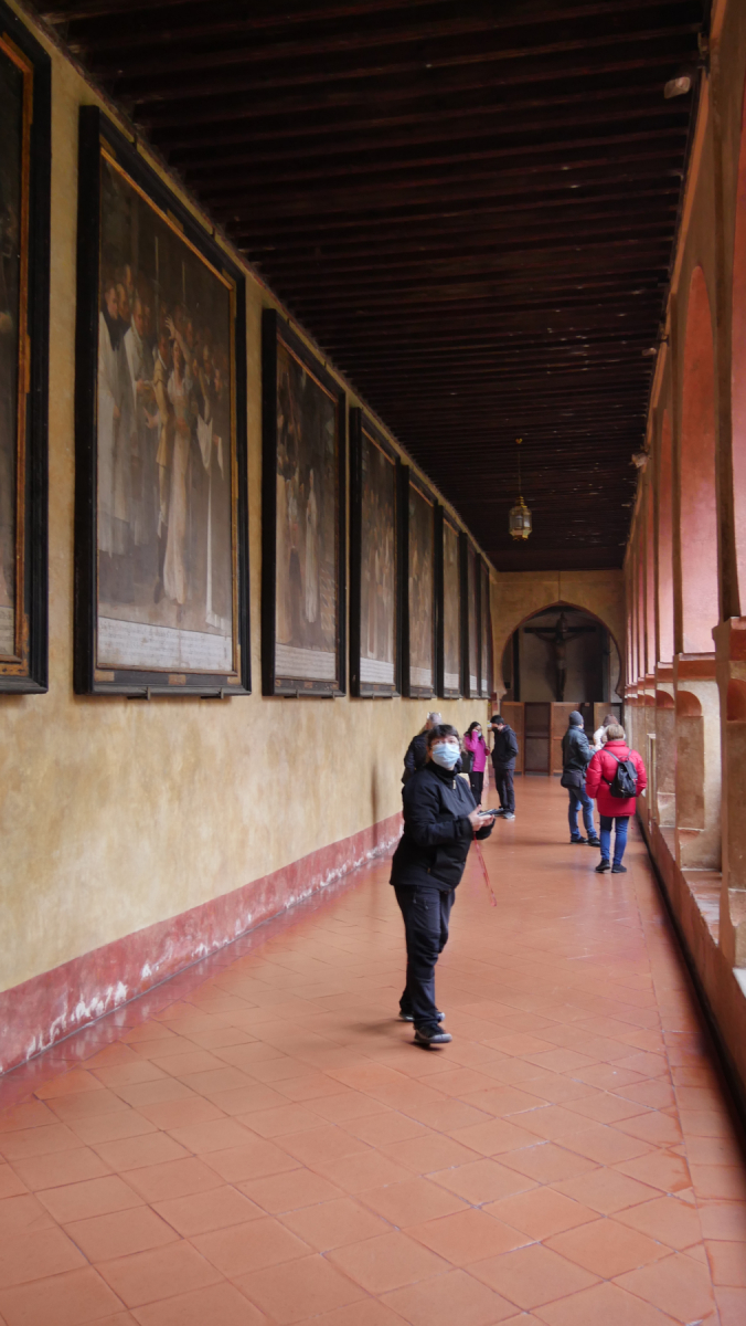 Das wir hier Fotos von den inneren Räumen des Klosters zeigen hat eine eigene Geschichte. Die Pflicht-Führung ist ausnahmslos auf Spanisch. Wir kommen gerade zur letzten Führung vor Siesta. Acht weitere Interessierte stehen bereit. Die offensichtliche Führerin zeigt uns den Weg, wir sollten Fotos machen.