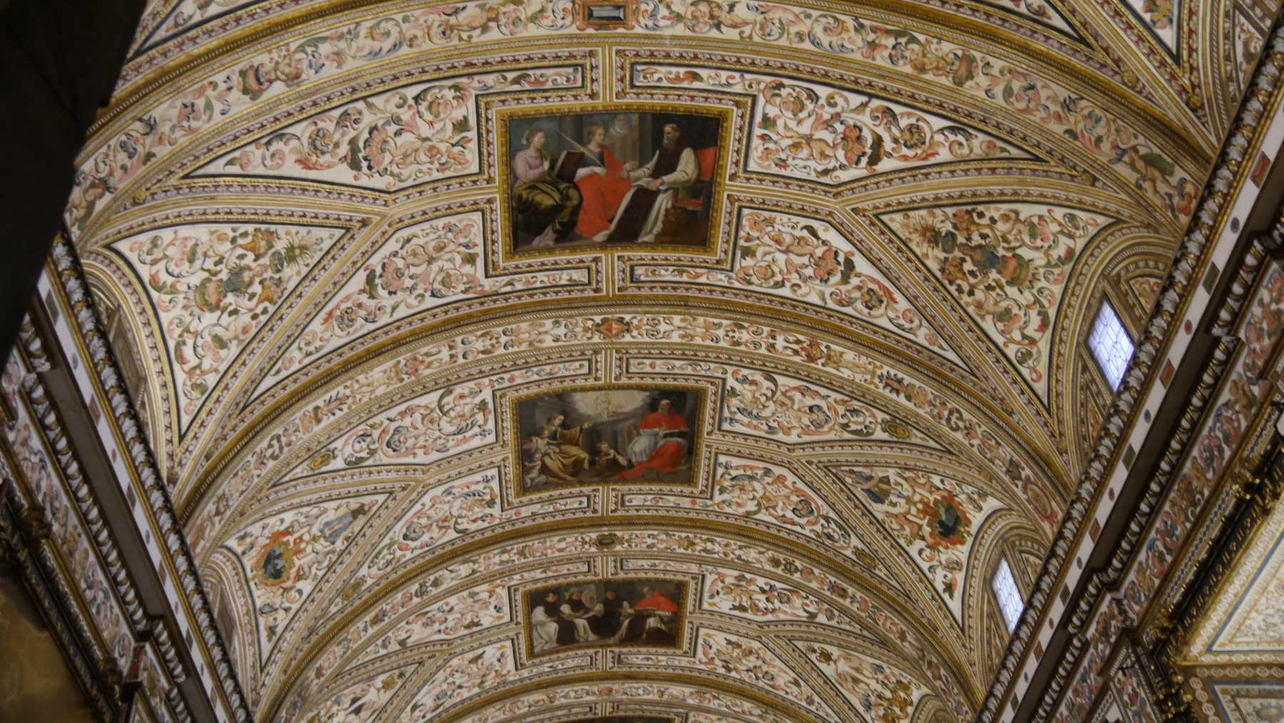 Das wir hier Fotos von den inneren Räumen des Klosters zeigen hat eine eigene Geschichte. Die Pflicht-Führung ist ausnahmslos auf Spanisch. Wir kommen gerade zur letzten Führung vor Siesta. Acht weitere Interessierte stehen bereit. Die offensichtliche Führerin zeigt uns den Weg, wir sollten Fotos machen.
