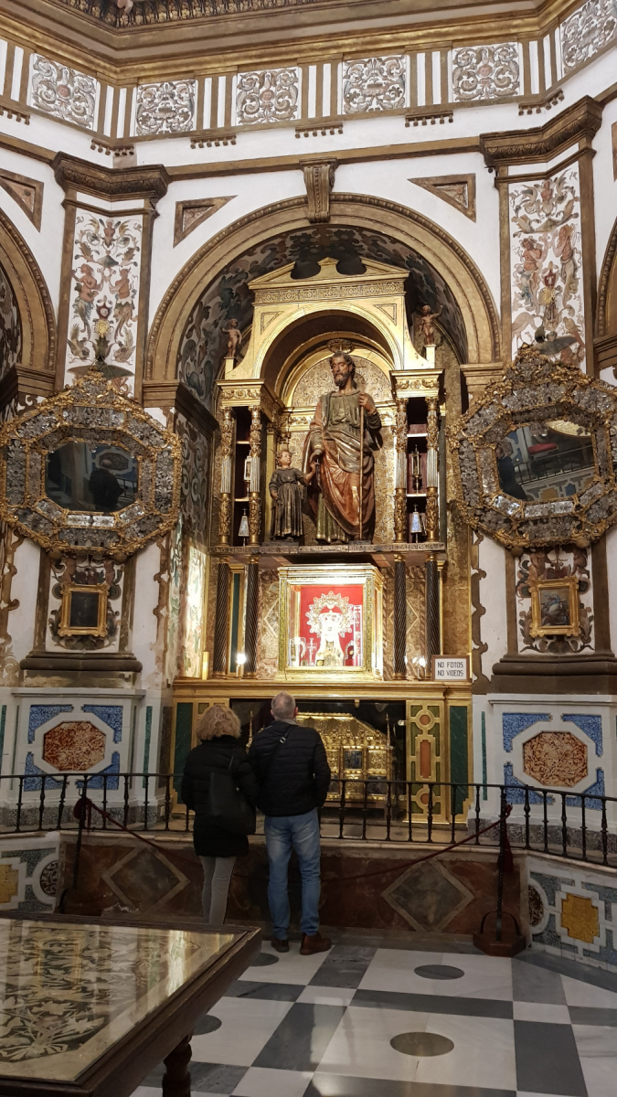 In den kommenden Räumen steht aber nirgends „No Photos“. Also weiter: Schnell kommt der Ruf „No Photos“. Andere machen auch heimlich welche. Wir begreifen: Innen dürfen wir wahrscheinlich gar nicht fotografieren. Steht aber nur hin und wieder da und vorher gesagt hat es uns niemand. Also jetzt machen wir es im Spiel. Wir gehen als letzte hinterher, ich lenke sie ab und halte immer das Handy vor mir – ich will ja nur mit google übersetzen – funktioniert zwar nur selten – und Anette erschafft sich einen „Überblick“. Vor dem letzten Raum wendet sie sich aber noch mal klar und deutlich mit sehr vielen Sätzen auf Spanisch an Anette, endend mit: No Photos!! Ich gucke sie mit meiner Kamera um den Hals und dem Handy in der Hand unschuldig blickend an: Mit der Frau habe ich nix zu tun 😊