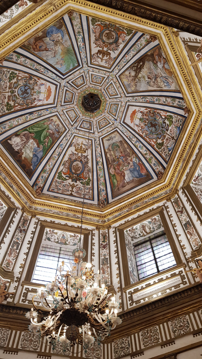 Das wir hier Fotos von den inneren Räumen des Klosters zeigen hat eine eigene Geschichte. Die Pflicht-Führung ist ausnahmslos auf Spanisch. Wir kommen gerade zur letzten Führung vor Siesta. Acht weitere Interessierte stehen bereit. Die offensichtliche Führerin zeigt uns den Weg, wir sollten Fotos machen.