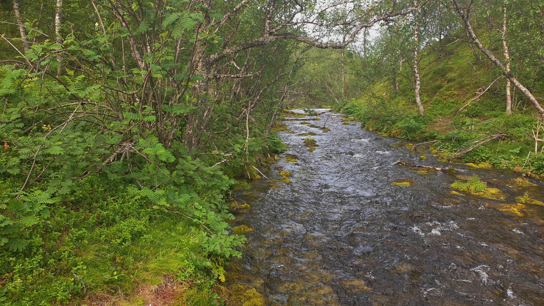 Inari peilen wir als Zwischenstopp zum Tanken und einkaufen an. Inari – ein See mit 4 Buchstaben – wer kennt ihn nicht. Der Ort ist absoluter Drehpunkt der Nordlandfahrer, sieht man spätestens an den verschiedensten Wohn-fahrzeugen und Nationalitäten. Uns ist es hier zu voll und wir haben hier auch keine Aktivitäten vor. Wir wollen jetzt am norwegisch/finnischen Grenzfluss Tana/Karasjohka entlang nach Norwegen. Ein kleiner Spaziergang im Nationalpark Kevon-Iuonnonpuisto steht aber aber vorher noch an. Es sind nur 2 km, zwar mit viel auf und ab, aber die Hügel sind mit vielen Treppen gut zu überwinden. Und warum haben wir über 4 Stunden gebraucht? Auf halber Strecke haben wir uns total verquatscht. Eine supernette junge Frau, die mit Ihrem ganzen Stolz – einem schicken Kastenwagen – unterwegs ist. 4.000km bereits durch Norwegen hinter sich und Schweden nun vor sich. Nicht nur das sie Top-Organisiert ist, hat sie bereits mehrere sehr herausfordernde Wanderungen in Norwegen bewältigt. Unsere Hochachtung für den Mut dies alleine zu tun. Toll, deine positive Energie. Liebe Coelestina, eine gute Weiterreise, viele Eindrücke und Alles Gute für Deine Vorhaben!