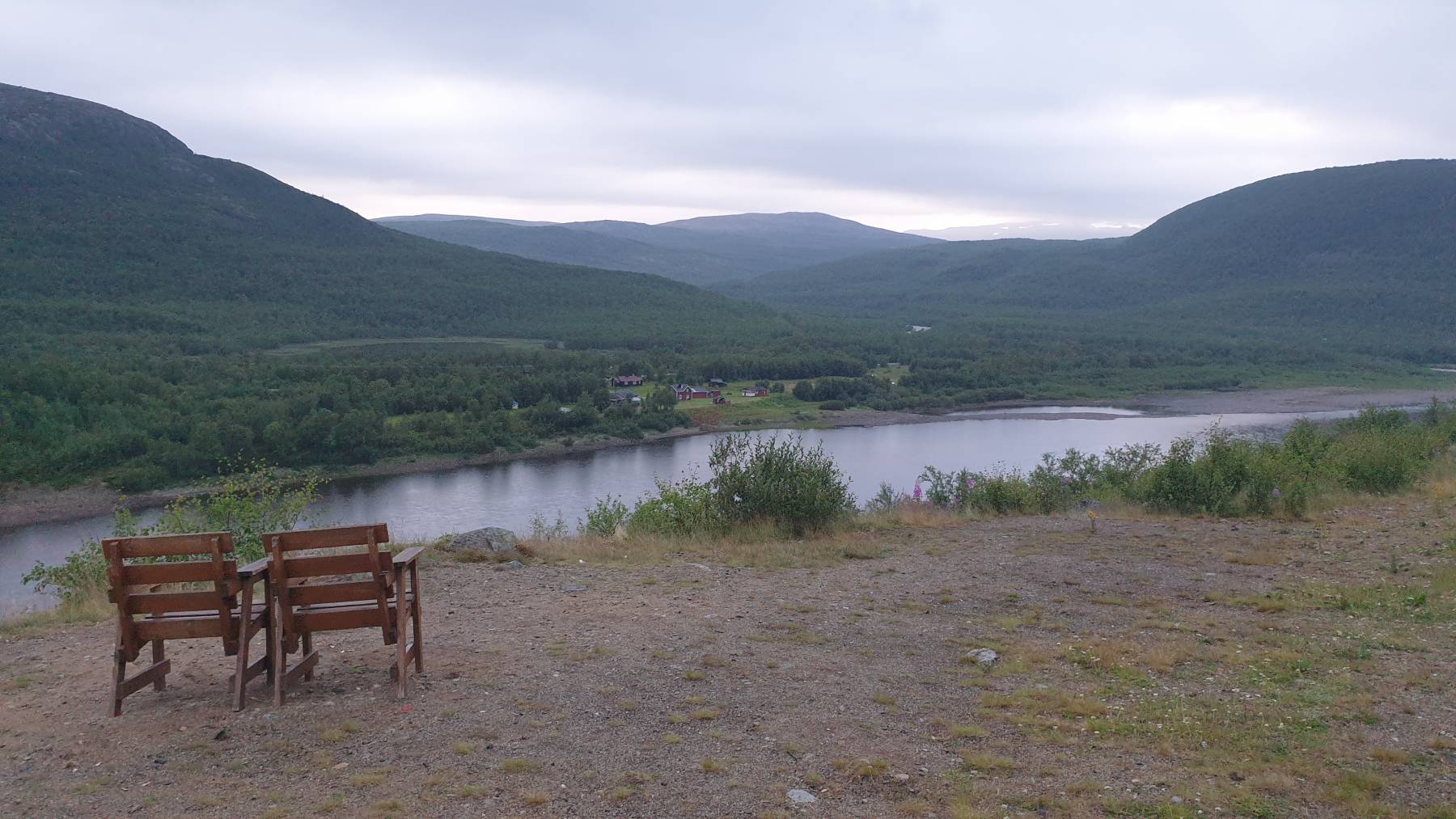 Inari peilen wir als Zwischenstopp zum Tanken und einkaufen an. Inari – ein See mit 4 Buchstaben – wer kennt ihn nicht. Der Ort ist absoluter Drehpunkt der Nordlandfahrer, sieht man spätestens an den verschiedensten Wohn-fahrzeugen und Nationalitäten. Uns ist es hier zu voll und wir haben hier auch keine Aktivitäten vor. Wir wollen jetzt am norwegisch/finnischen Grenzfluss Tana/Karasjohka entlang nach Norwegen. Ein kleiner Spaziergang im Nationalpark Kevon-Iuonnonpuisto steht aber aber vorher noch an. Es sind nur 2 km, zwar mit viel auf und ab, aber die Hügel sind mit vielen Treppen gut zu überwinden. Und warum haben wir über 4 Stunden gebraucht? Auf halber Strecke haben wir uns total verquatscht. Eine supernette junge Frau, die mit Ihrem ganzen Stolz – einem schicken Kastenwagen – unterwegs ist. 4.000km bereits durch Norwegen hinter sich und Schweden nun vor sich. Nicht nur das sie Top-Organisiert ist, hat sie bereits mehrere sehr herausfordernde Wanderungen in Norwegen bewältigt. Unsere Hochachtung für den Mut dies alleine zu tun. Toll, deine positive Energie. Liebe Coelestina, eine gute Weiterreise, viele Eindrücke und Alles Gute für Deine Vorhaben!