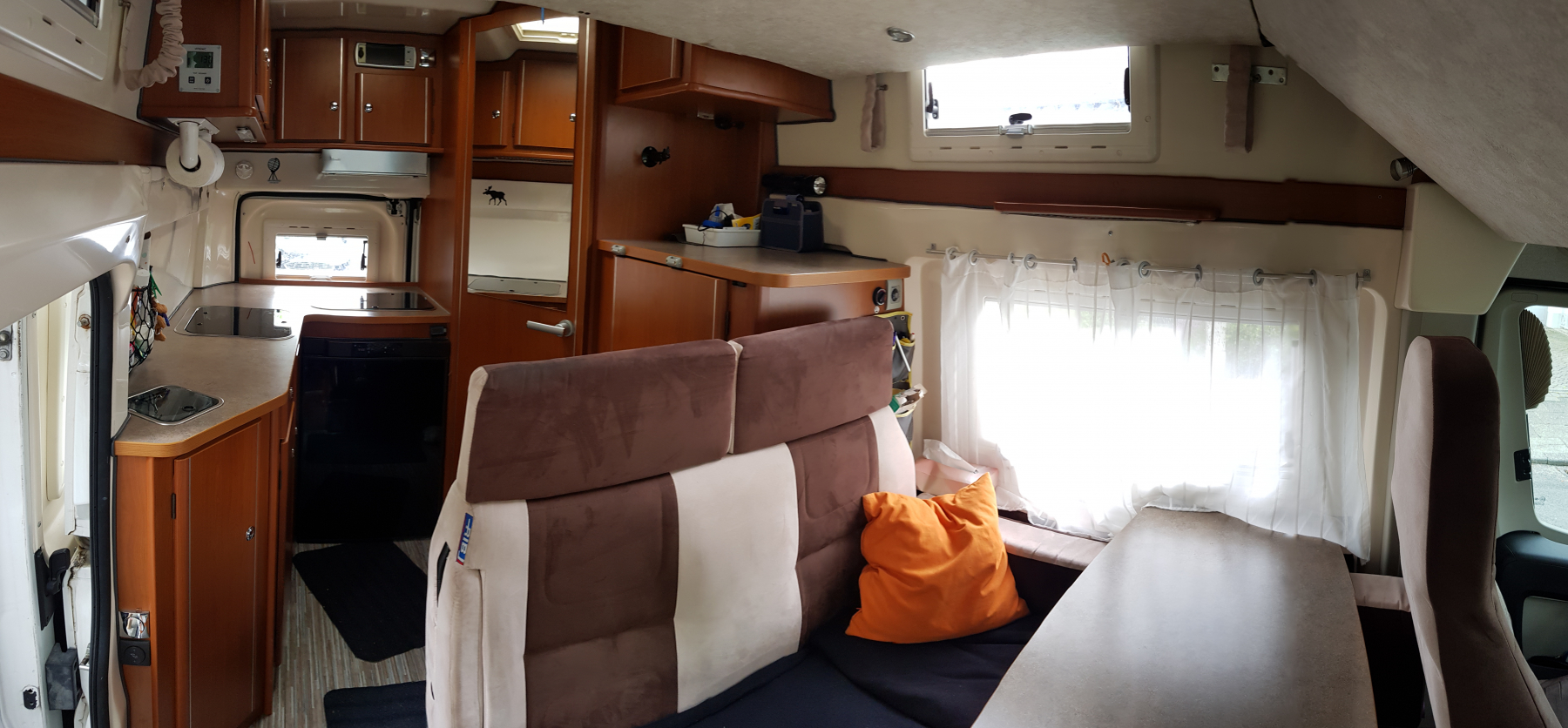 Wir wollten abends nicht mehr mühsam das Bett machen müssen. Ein Hubbett ist eine super Lösung. An einer Stelle befestigt, also leicht bettfertig – und zudem liegt das Bettzeug bereits da. Eine größere Nasszelle und im Heck der fast identische Grundriss. Das Einräumen ging schnell.