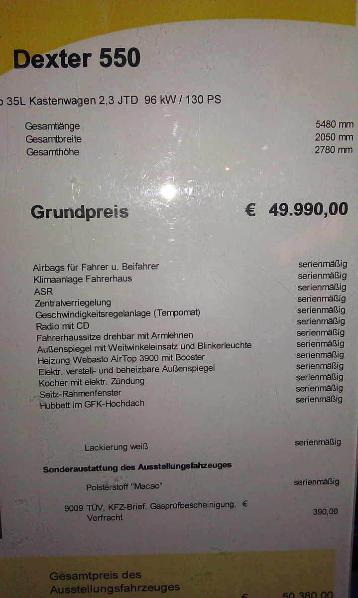 Auf dem Caravan Salon in Düsseldorf 2011 bestellt und im Mai 2012 im Sauerland beim Händler übergeben bekommen. Wir waren zweimal auf der Messe und „mussten“ uns dann nur noch zwischen einem Knaus Kastenwagen und dem Euro 10.000,– teureren Karmann entscheiden. Beides halt Serienfahrzeuge.
