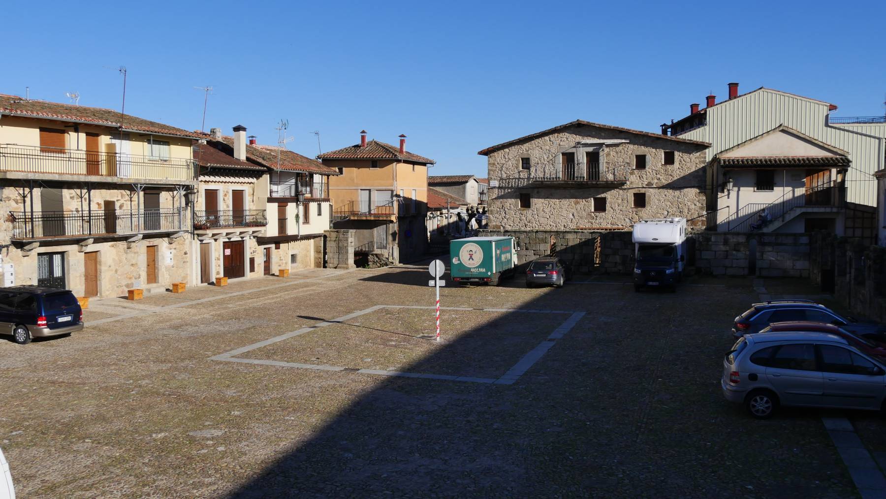 Haben einen schönen Parkplatz in der Mitte des Ortes gefunden
