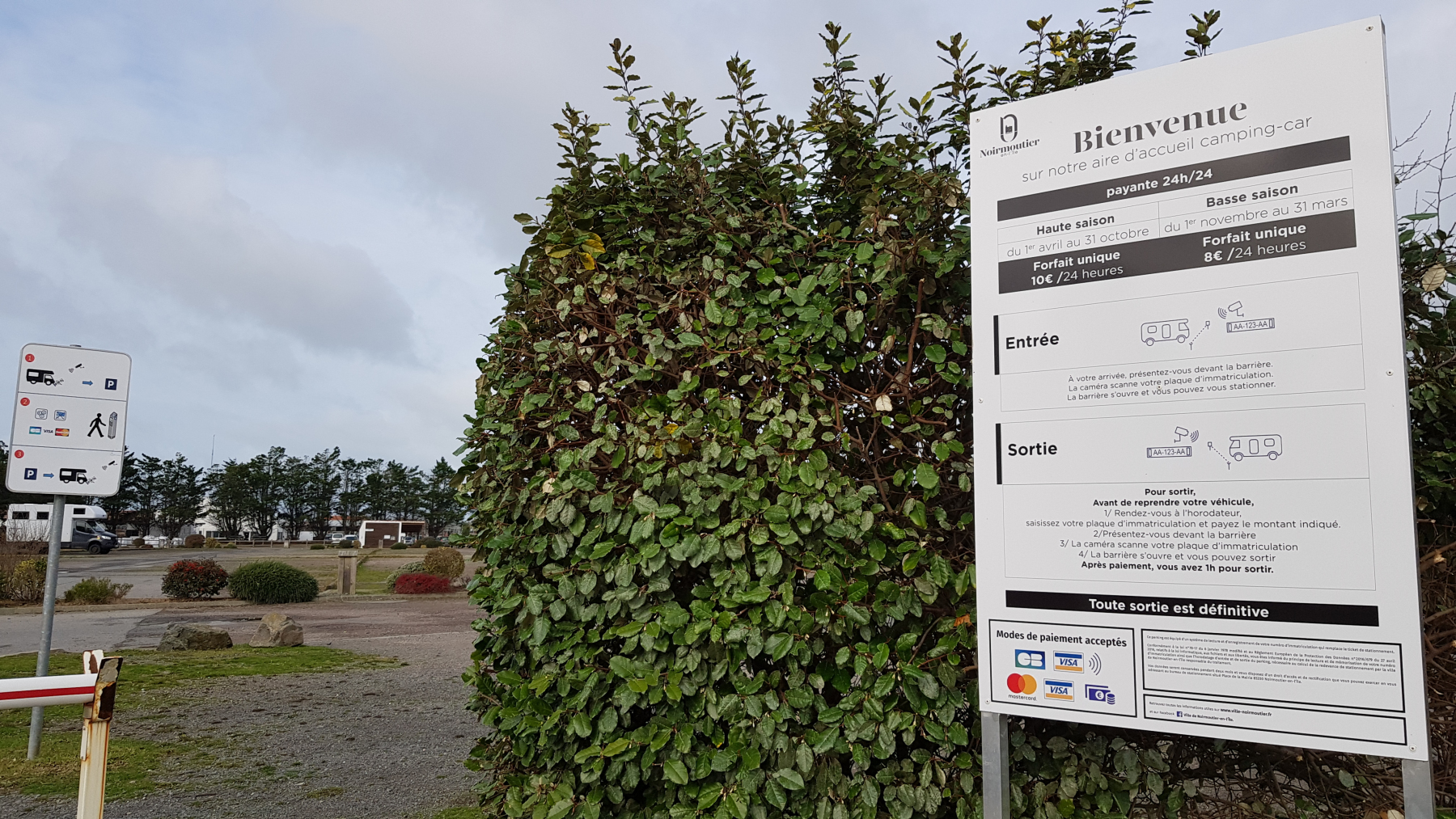 Vor dem nächsten etwas kuriosen Highlight wird uns schon etwas mulmig. In unserem Womoführer steht, dass die sich das nicht getraut haben: Die Durchquerung des Atlantiks zur Insel Noirmoutier-en-l´Ile. Gut nur auf einer Strecke von 3 km. Durch die Gezeiten wird die Strecke für einige Stunden befahrbar. Das wird sehr groß angezeigt, sogar mehrsprachig. Ein echtes Abenteuer ist es vielleicht nicht, aber mit dem neuen Fahrzeug durch das Watt zu fahren hat was – auch wenn es tatsächlich eine betonierte Piste ist.
