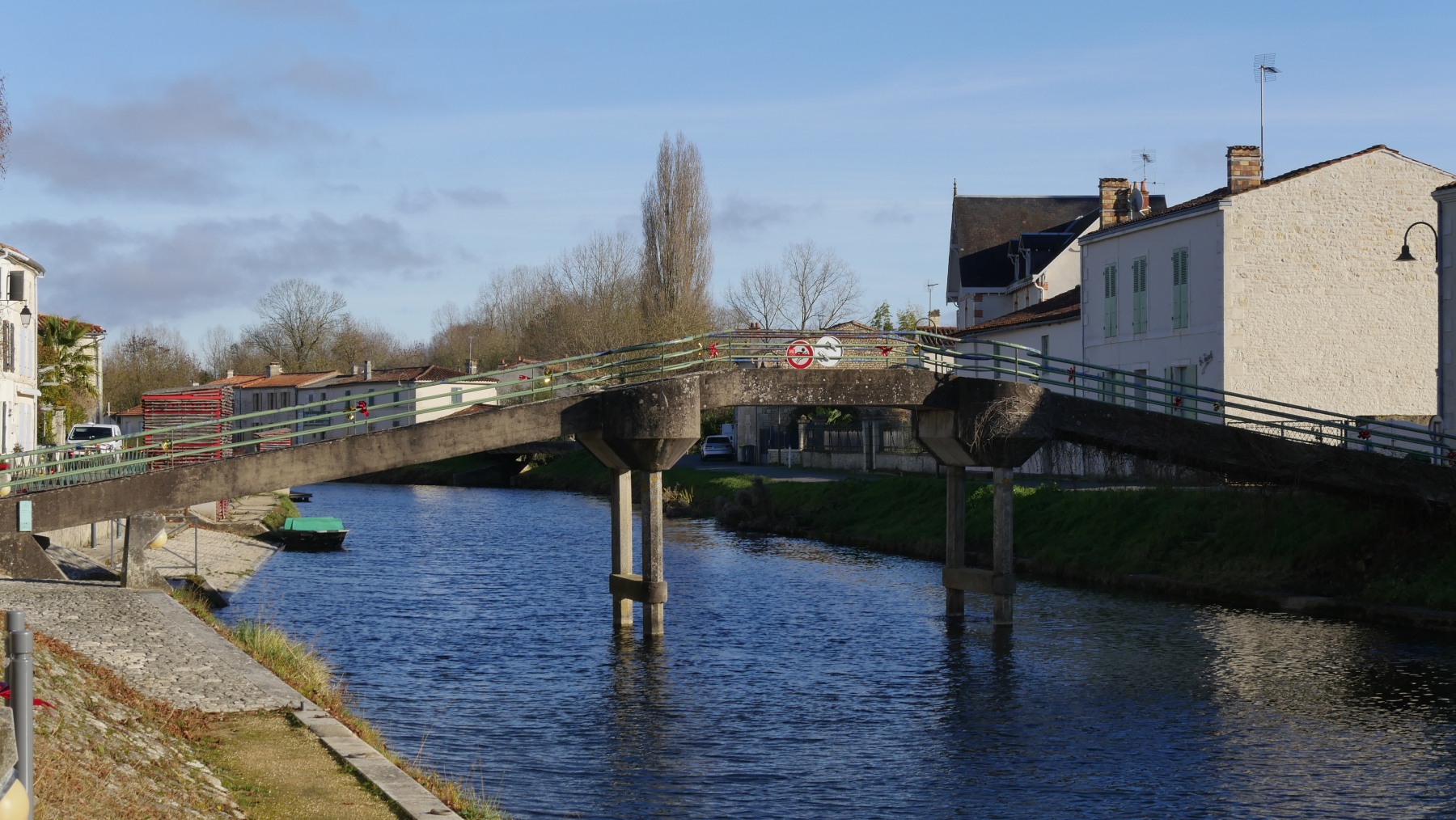 Jetzt machen wir einen Schlenker durch den Parc naturel régional du Marais poitevin. Durch die Schmelze der Gletscher vor 10.000 Jahren am Ende der Eiszeit überschwemmte das Meer die Region. Es entstand eine Sumpflandschaft, die heute noch mit 8.200 km Wasserwegen durchzogen ist. Ein kleiner Eindruck