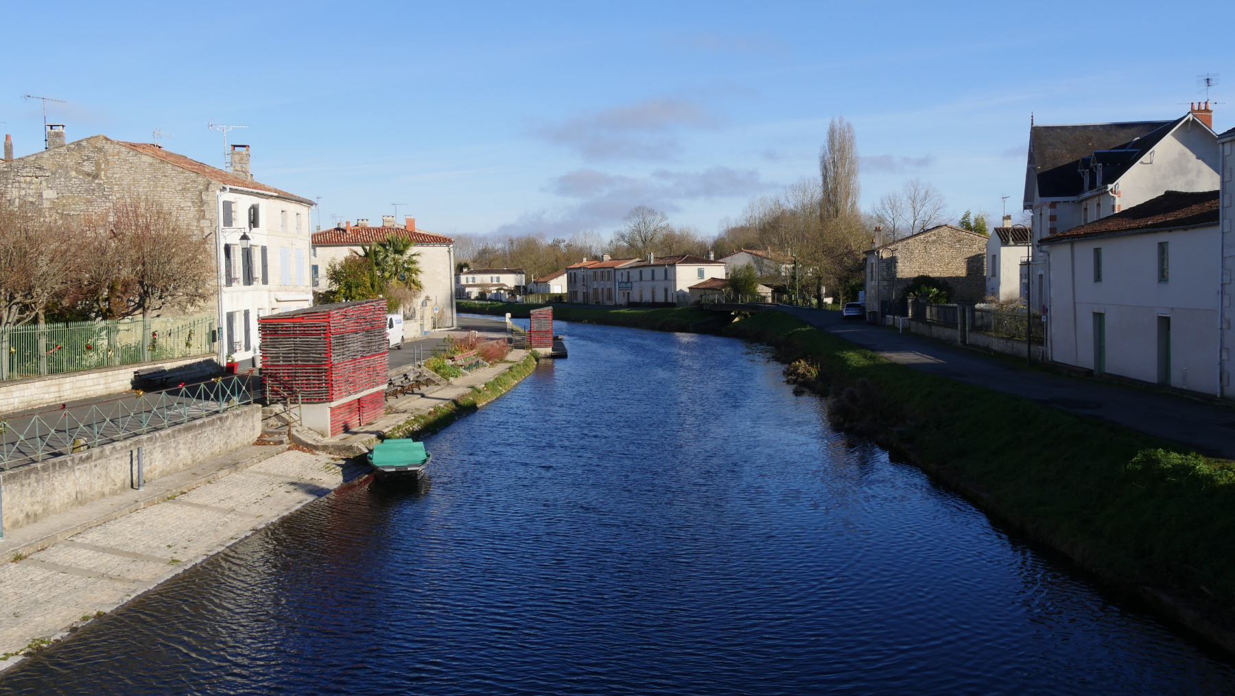 Jetzt machen wir einen Schlenker durch den Parc naturel régional du Marais poitevin. Durch die Schmelze der Gletscher vor 10.000 Jahren am Ende der Eiszeit überschwemmte das Meer die Region. Es entstand eine Sumpflandschaft, die heute noch mit 8.200 km Wasserwegen durchzogen ist. Ein kleiner Eindruck