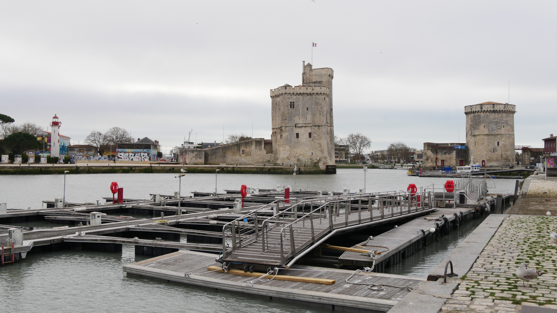 Wieder an der Küste machen wir einen Spaziergang durch La Rochelle. Eine reizvolle Stadt mit vielen Arkadengängen und teilweise exklusiven Geschäften. Es zieht heute sehr kalter Wind im Hafenbecken auf. Für ein paar fotografische Eindrücke, mit der markanten Hafeneinfahrt, reicht es aber.