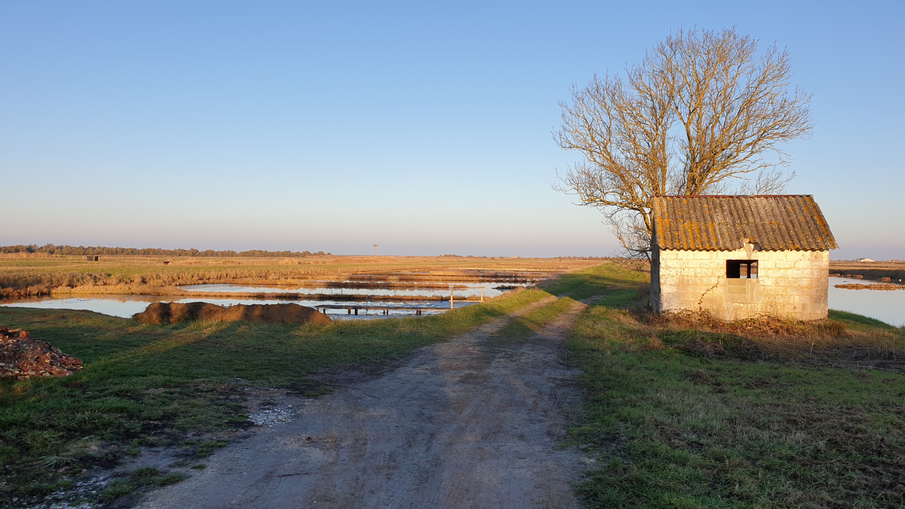 Jetzt machen wir einen Schlenker durch den Parc naturel régional du Marais poitevin. Durch die Schmelze der Gletscher vor 10.000 Jahren am Ende der Eiszeit überschwemmte das Meer die Region. Es entstand eine Sumpflandschaft, die heute noch mit 8.200 km Wasserwegen durchzogen ist. Ein kleiner Eindruck