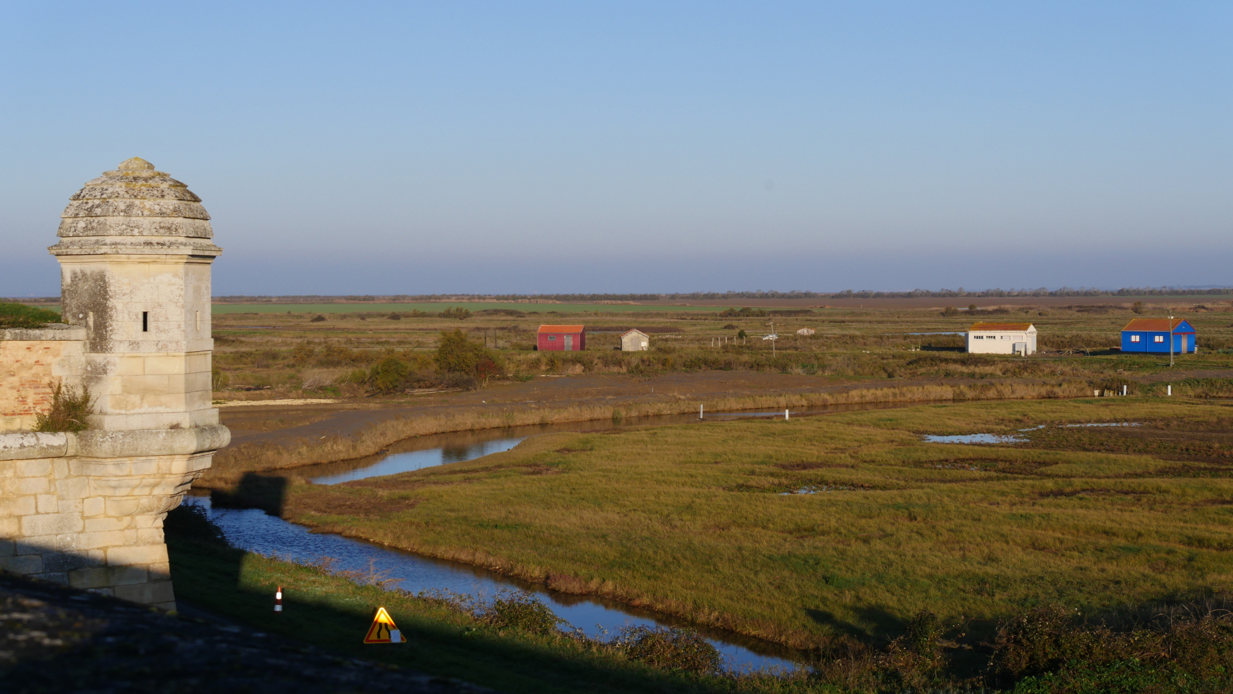 Am Abend fahren wir auf der Hauptstraße mitten durch die Altstadt von Brouage, eine ehemalige französische Siedlung und Hafen-Festung am Meer aus dem 14. Jh. Nur das Meer kann man von hier nicht mehr sehen. Und es war mal der größte Salzhafen Europas. Wir übernachten 2 km hinter dem Ort am Friedhof und planen für den nächsten Tag eine kurze Besichtigung. Wir klettern auf die Burgmauer und erfreuen uns eines super Ausblickes. Wir gehen immer weiter und am Ende sogar ganz rum – immerhin 3,3 km – und das alles vor dem Frühstück. Brot haben wir aber keines gefunden😒.