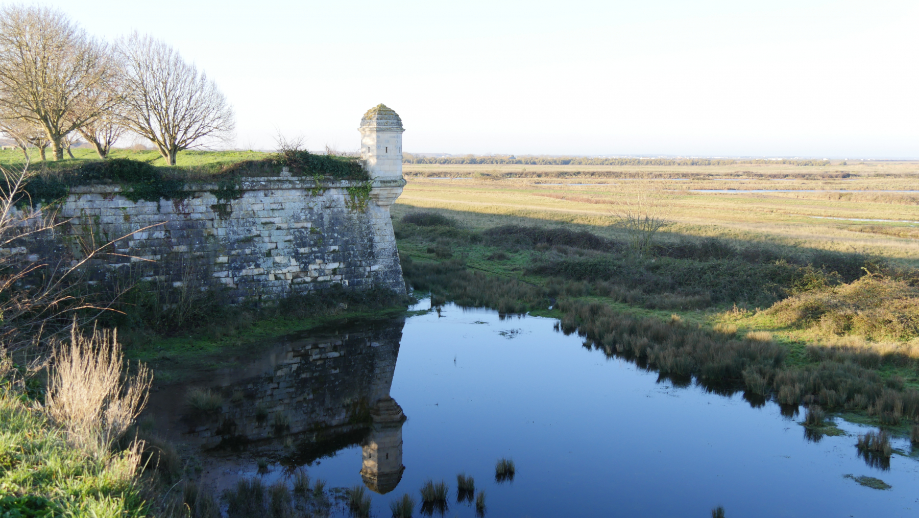 Am Abend fahren wir auf der Hauptstraße mitten durch die Altstadt von Brouage, eine ehemalige französische Siedlung und Hafen-Festung am Meer aus dem 14. Jh. Nur das Meer kann man von hier nicht mehr sehen. Und es war mal der größte Salzhafen Europas. Wir übernachten 2 km hinter dem Ort am Friedhof und planen für den nächsten Tag eine kurze Besichtigung. Wir klettern auf die Burgmauer und erfreuen uns eines super Ausblickes. Wir gehen immer weiter und am Ende sogar ganz rum – immerhin 3,3 km – und das alles vor dem Frühstück. Brot haben wir aber keines gefunden😒.