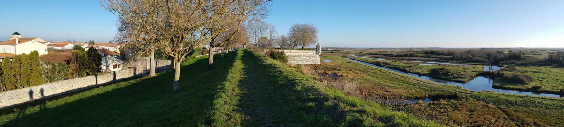 Am Abend fahren wir auf der Hauptstraße mitten durch die Altstadt von Brouage, eine ehemalige französische Siedlung und Hafen-Festung am Meer aus dem 14. Jh. Nur das Meer kann man von hier nicht mehr sehen. Und es war mal der größte Salzhafen Europas. Wir übernachten 2 km hinter dem Ort am Friedhof und planen für den nächsten Tag eine kurze Besichtigung. Wir klettern auf die Burgmauer und erfreuen uns eines super Ausblickes. Wir gehen immer weiter und am Ende sogar ganz rum – immerhin 3,3 km – und das alles vor dem Frühstück. Brot haben wir aber keines gefunden😒.