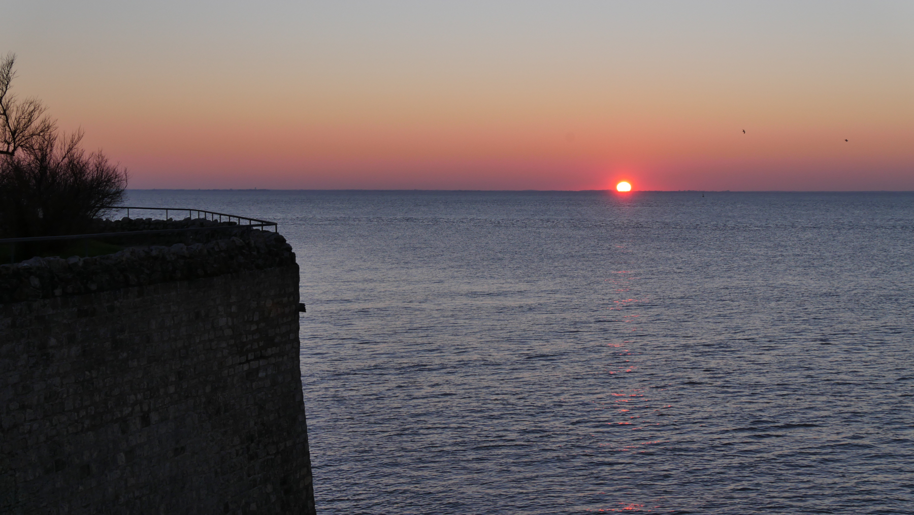 Am Abend fahren wir auf der Hauptstraße mitten durch die Altstadt von Brouage, eine ehemalige französische Siedlung und Hafen-Festung am Meer aus dem 14. Jh. Nur das Meer kann man von hier nicht mehr sehen. Und es war mal der größte Salzhafen Europas. Wir übernachten 2 km hinter dem Ort am Friedhof und planen für den nächsten Tag eine kurze Besichtigung. Wir klettern auf die Burgmauer und erfreuen uns eines super Ausblickes. Wir gehen immer weiter und am Ende sogar ganz rum – immerhin 3,3 km – und das alles vor dem Frühstück. Brot haben wir aber keines gefunden😒.