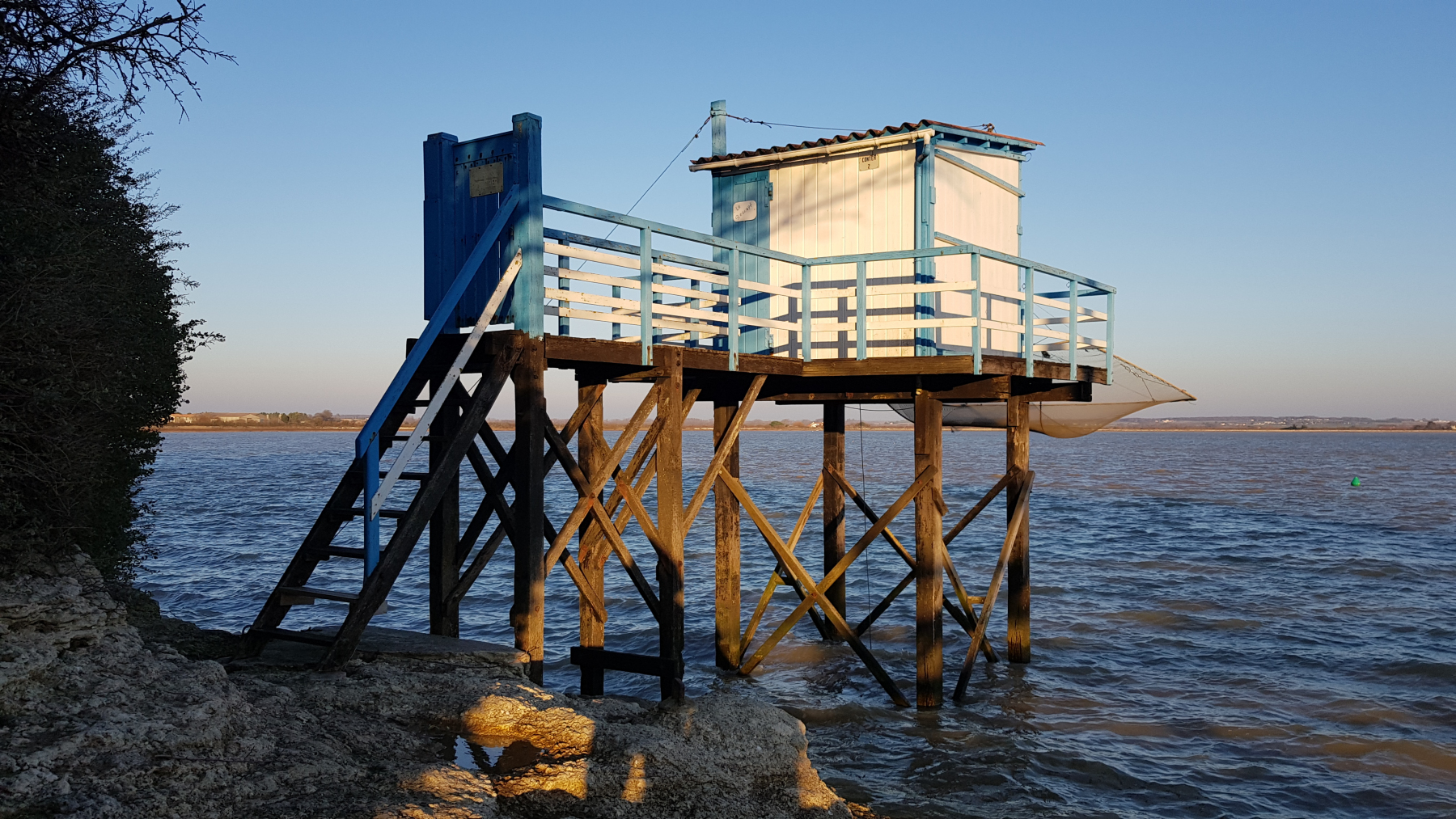 Es gibt so viele Sachen – so unterschiedlicher Art – zu sehen. Meschers sur gironde ist wieder so ein besonderer Ort. Hier warten die in die Klippen (falaises) hineingetriebenen Höhlen auf uns. Sie dienten als Fischerhütten, als Getreidespeicher, als Verstecke der Protestanten oder im 19. Jahrhundert als einfache Kneipen. Leider ist alles zu und wir können keine von innen besichtigen. Fotogen sind sie aber so schon. Wir finden einen kleinen Abgang runter zum Wasser. Toll. Wir gehen direkt an den Fischerhütten (Carrellets) vorbei. Sorry, aber einfach fotogen.