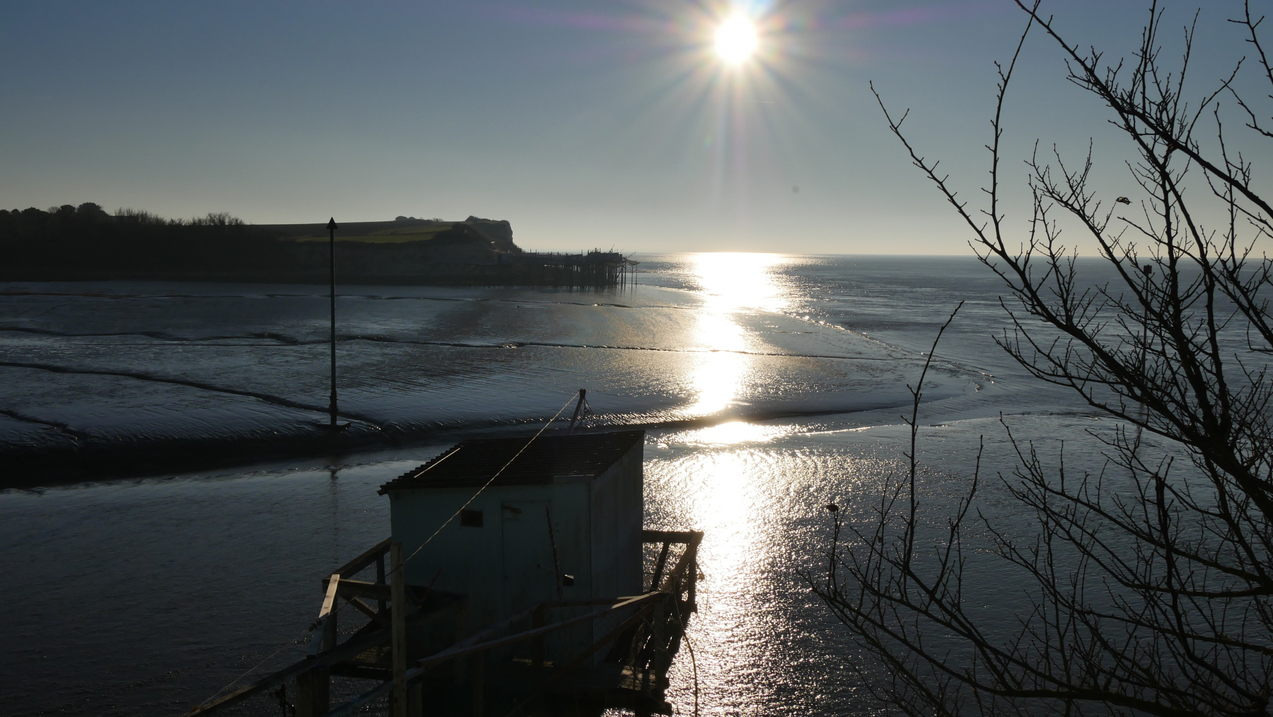 Es gibt so viele Sachen – so unterschiedlicher Art – zu sehen. Meschers sur gironde ist wieder so ein besonderer Ort. Hier warten die in die Klippen (falaises) hineingetriebenen Höhlen auf uns. Sie dienten als Fischerhütten, als Getreidespeicher, als Verstecke der Protestanten oder im 19. Jahrhundert als einfache Kneipen. Leider ist alles zu und wir können keine von innen besichtigen. Fotogen sind sie aber so schon. Wir finden einen kleinen Abgang runter zum Wasser. Toll. Wir gehen direkt an den Fischerhütten (Carrellets) vorbei. Sorry, aber einfach fotogen.
