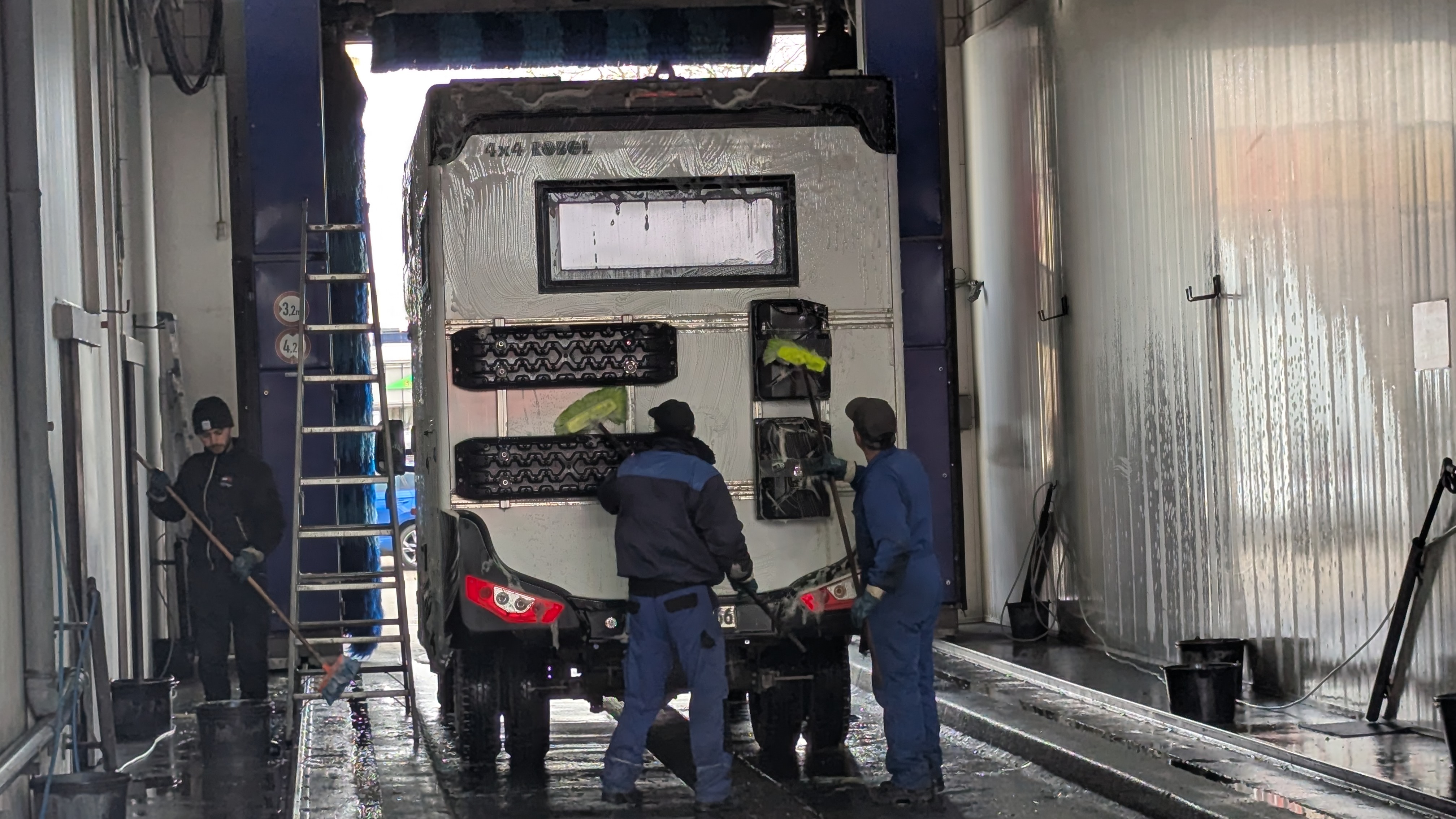 Fahrzeugoptimierung – bei offroad-motorhomes bei Darmstadt lassen wir das Fahrzeug für Fernreisen anpassen: Höhenkit, Dieselqualität, Abstimmung, Möglichkeit im Ausland AdBlue abzustellen. Ursprünglich wollten wir noch die Fernwartung vereinbaren, also den weltweiten Zugriff durch die Firma auf unser Fahrzeug. Der Chef, Markus Gruse, rät uns aber u.a. davon ab, da mit der preiswerten Möglichkeit bei unserem Modell kaum noch Zugriffe möglich sind. Erst mit einem mehrere Tausend Euro teuren Werkstatt-Gerät würde es funktionieren und das wäre bei der Zuverlässigkeit des Sprinters nicht notwendig.